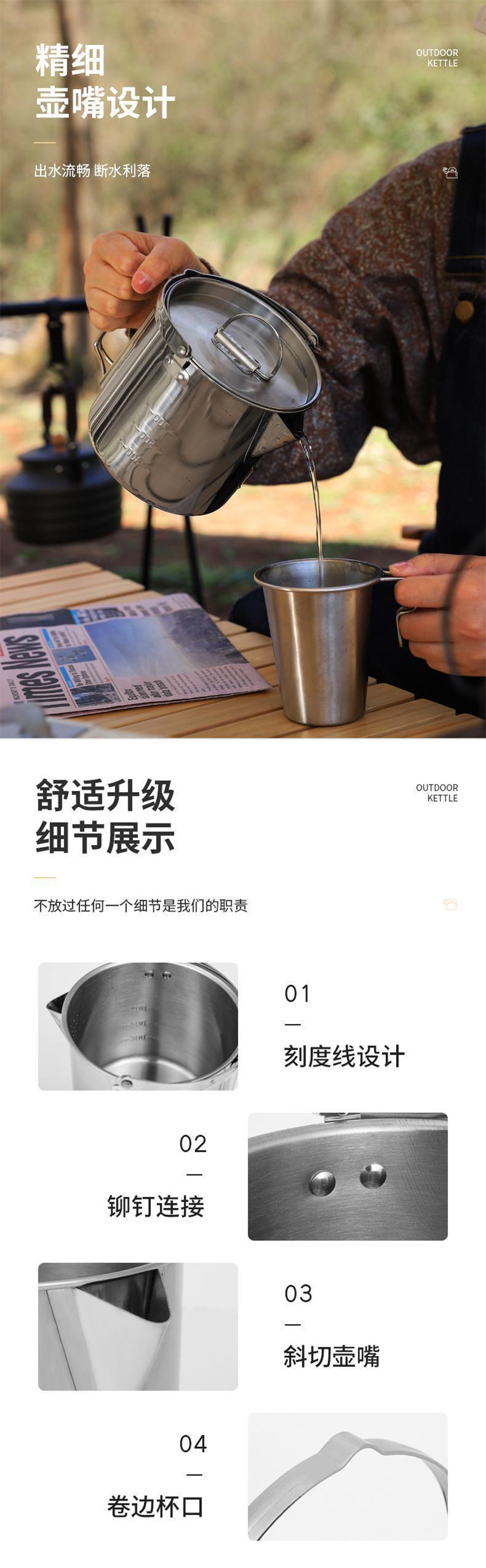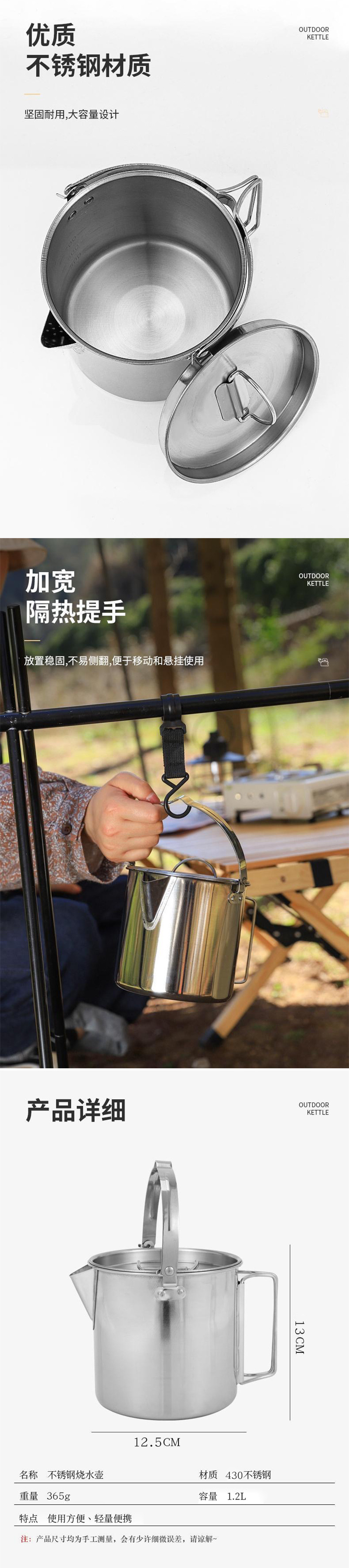 비 자기 스테인레스 스틸 야외 주전자 휴대용 야외 등산 피크닉 끓는 대용량 주전자 1.2L스토어 가기
