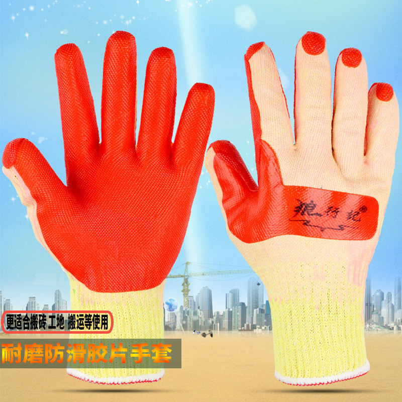 늑대 라인 기억 통기성 고무 미끄럼 방지 코팅 내마모성 건설 현장 벽돌 교수형 고무 필름 노동 장갑