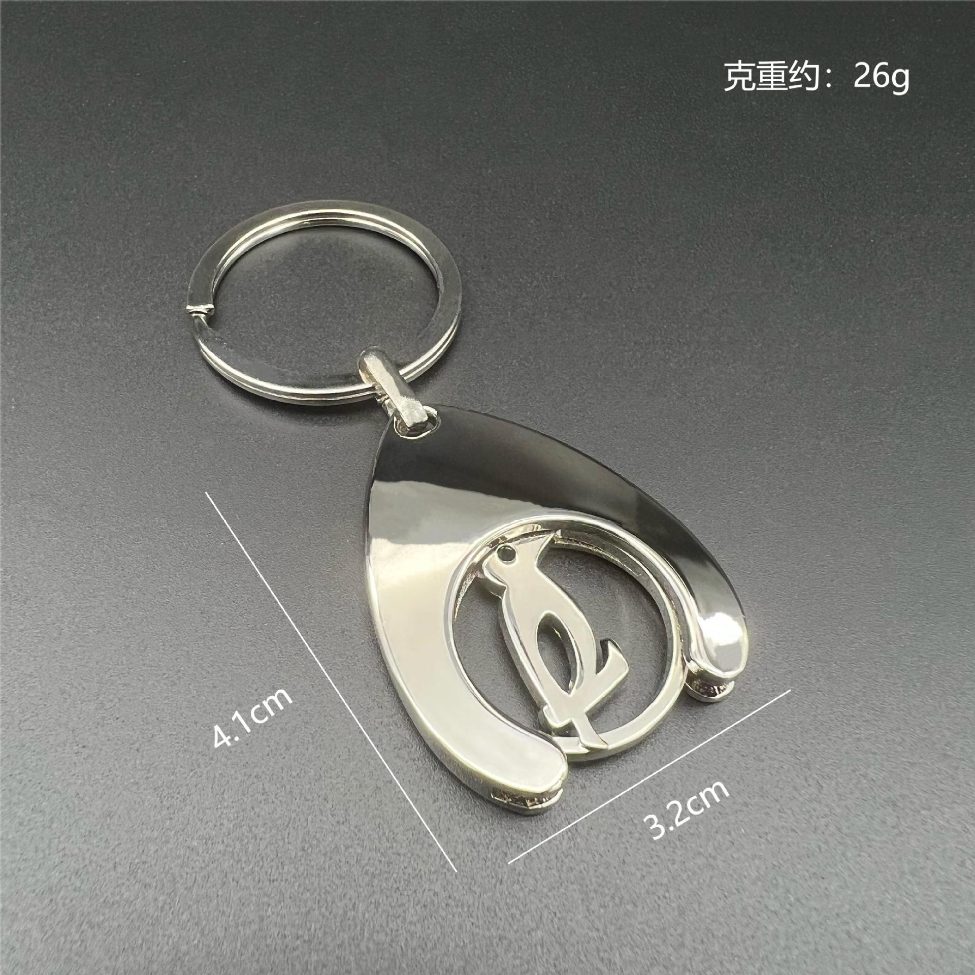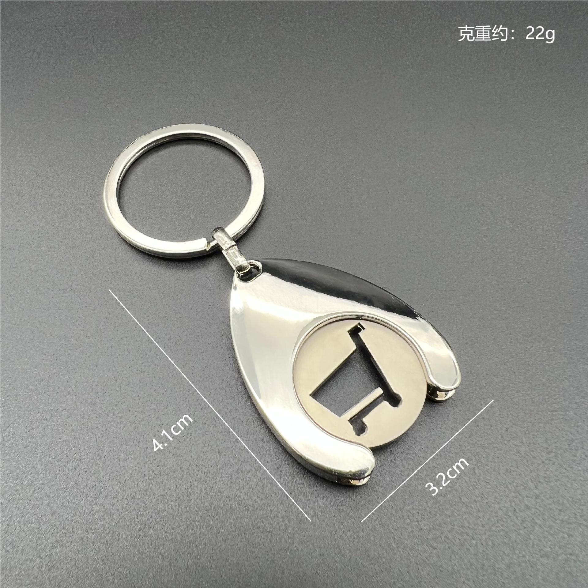 공장 크로스 보더 트롤리 장바구니 USD 유로 광택 로고 자동차 키 체인 금속 토큰 키 체인