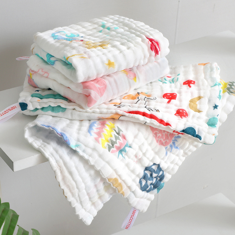 6겹 고밀도 순면 거즈 사각 수건 아기 A급 프린트 페이스 타올 어린이 수건 침 수건 순면 도매