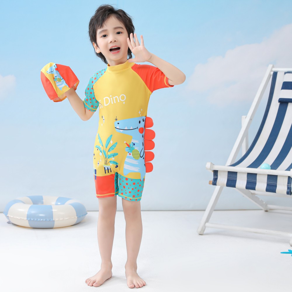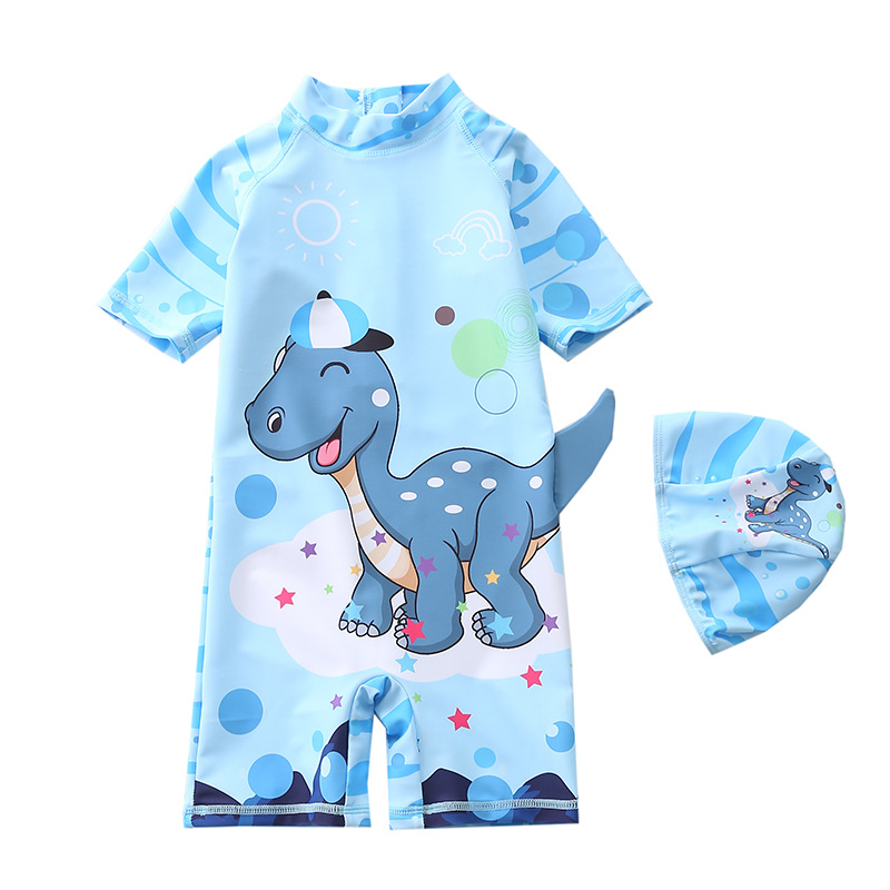 어린이 수영복 남아용 원피스 수영복 한국 공룡 후드 수영복 긴팔 비치웨어 자외선 차단 온천 수영복스토어 가기