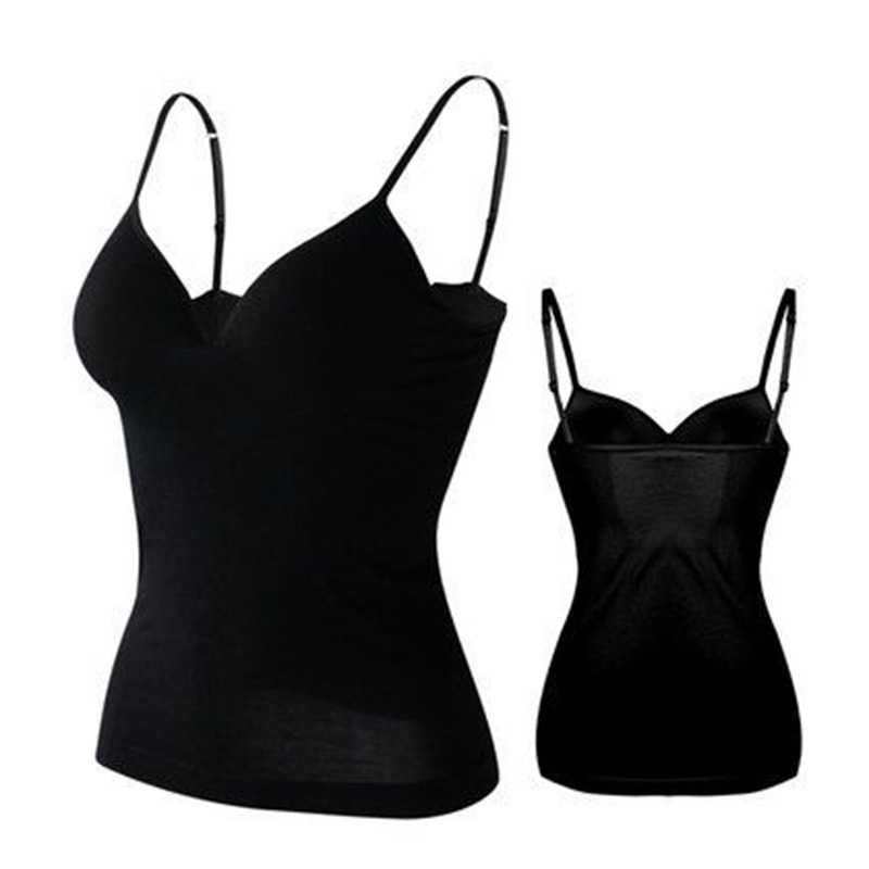 가슴 패드가있는 유럽 및 미국 여성용 멜빵 원피스 조끼 없음 스틸 링 브라 프리 캐미솔 조끼 여성용스토어 가기