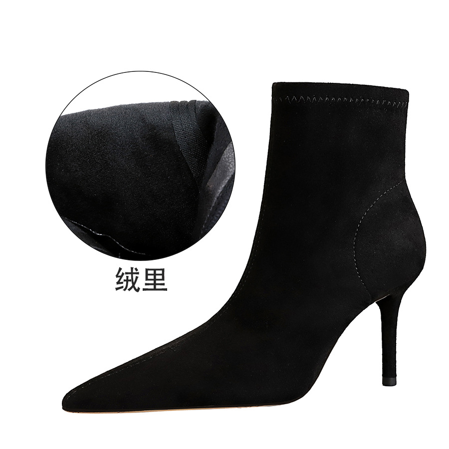 8788-7 유럽과 미국 스타일 패션 심플 얇은 힐 하이힐 스웨이드 뾰족한 섹시한 나이트 클럽 슬림 짧은 부츠 여성과 알몸 부츠스토어 가기