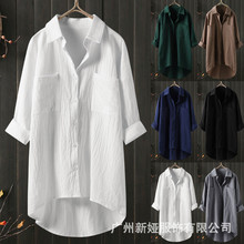 2020 소원 코튼 린넨 여성 탑 느슨한 캐주얼 단색 셔츠 V-넥 탑 여성 스타일