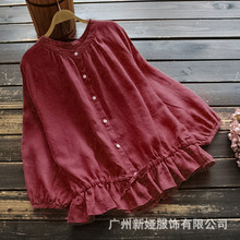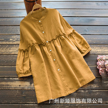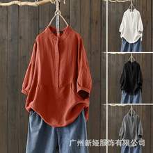 2020 소원 코튼 린넨 여성 탑 느슨한 캐주얼 단색 셔츠 V-넥 탑 여성 스타일스토어 가기