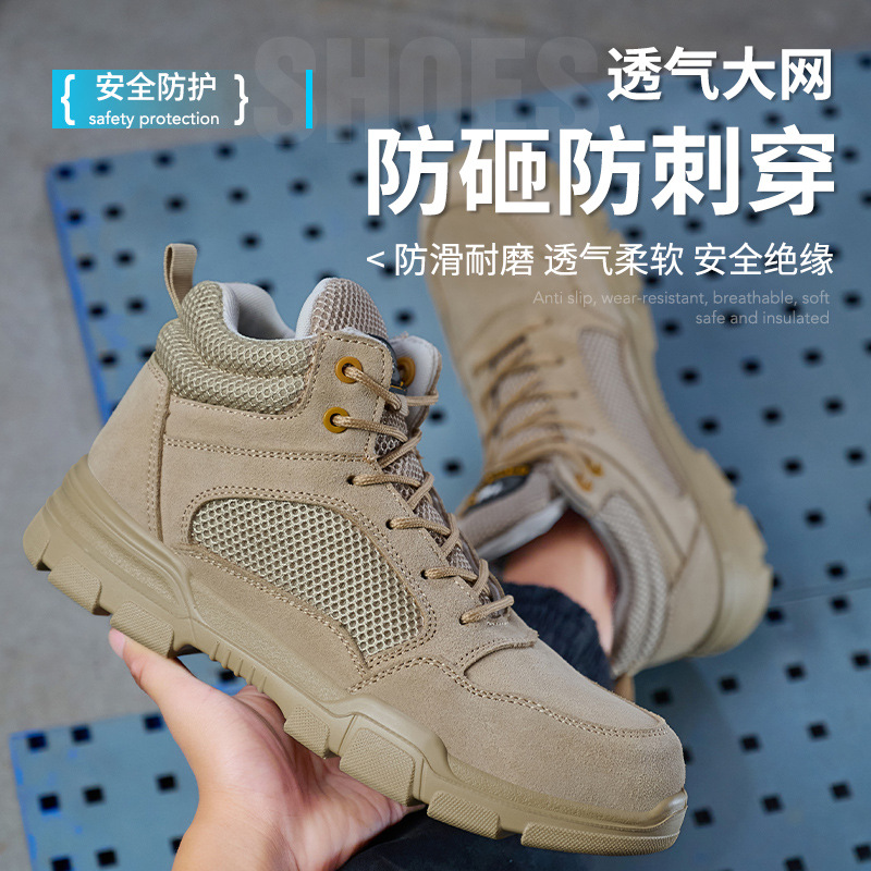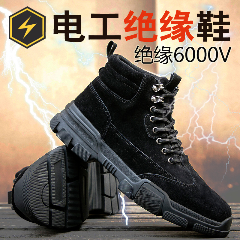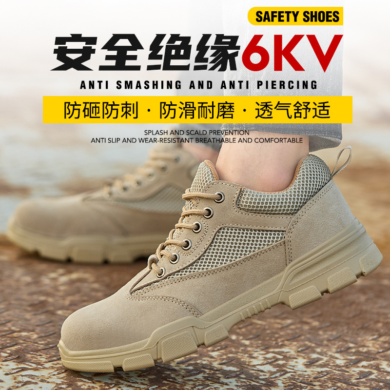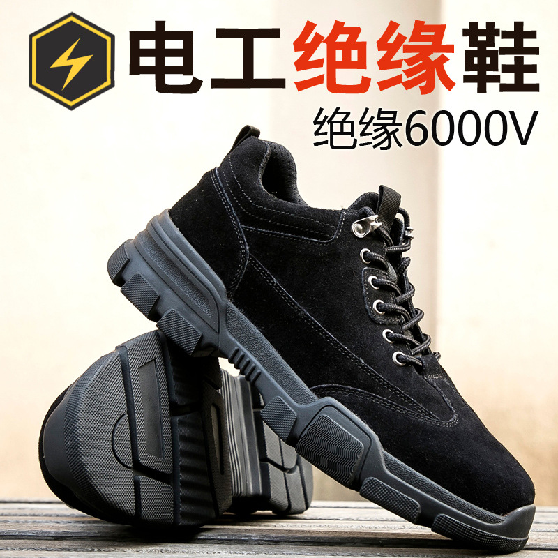 남성용 저상형 절연 작업화, 충격 방지 및 펑크 방지, 스웨이드 소가죽 작업 안전화, 내마모성 산업 및 광산 보호화스토어 가기