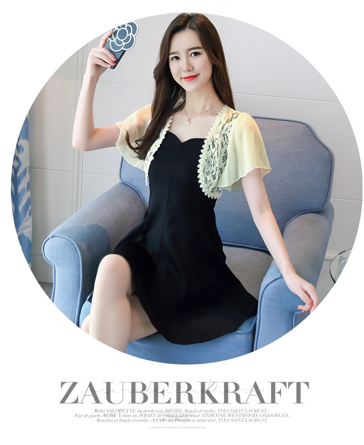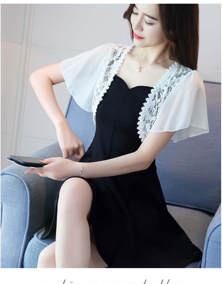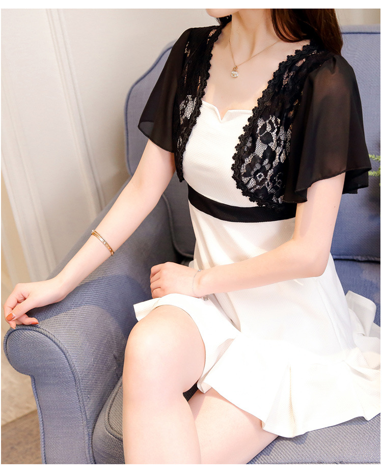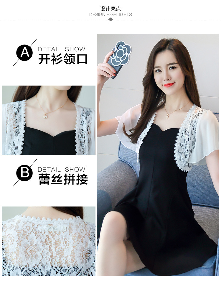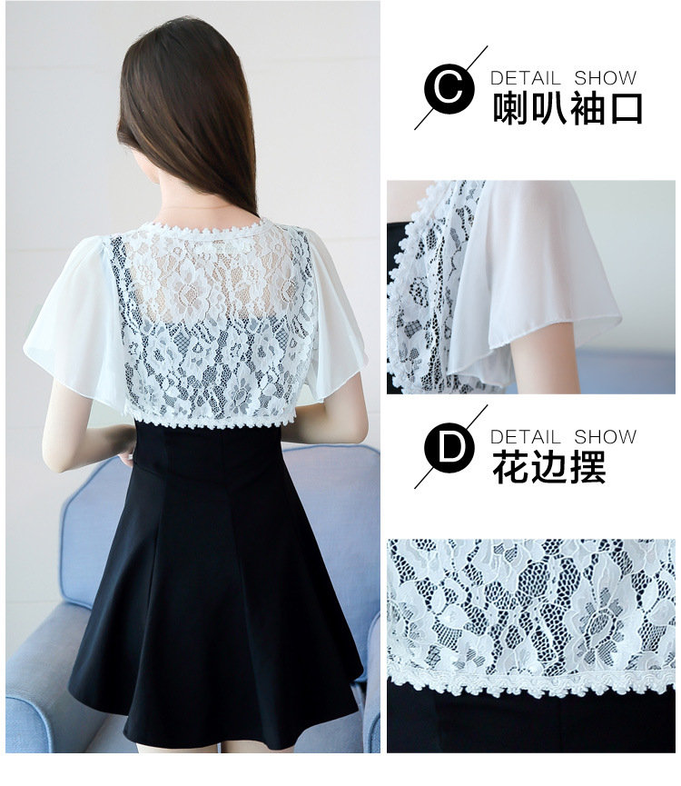 레이스 카디건 여성의 여름 새로운 모든 경기 짧은 쉬폰 탑 숄 재킷 플러스 사이즈 매칭 스커트 조끼스토어 가기