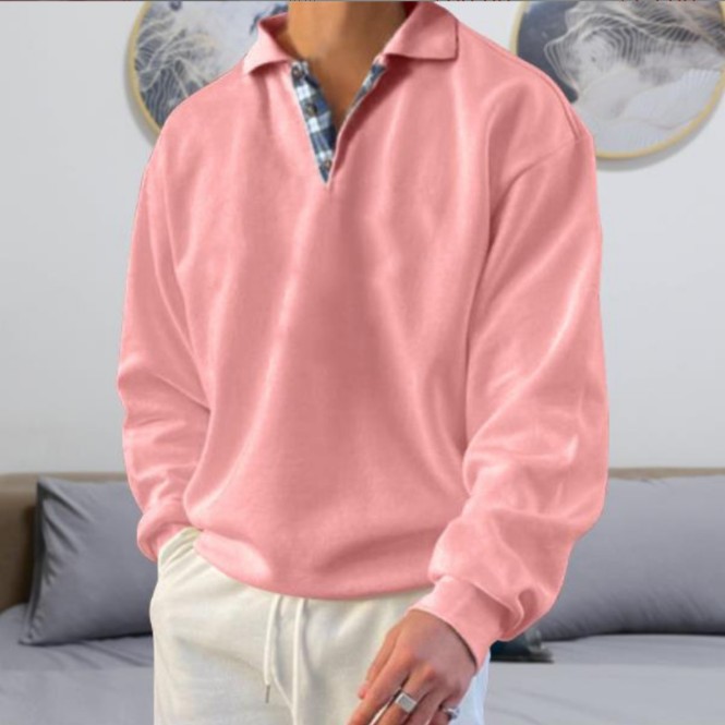 2025 아마존 위시 독립 사이트 인기 상품 가을 긴팔 브이넥 남성용 라펠 루즈핏 스웨트셔츠 남성복
