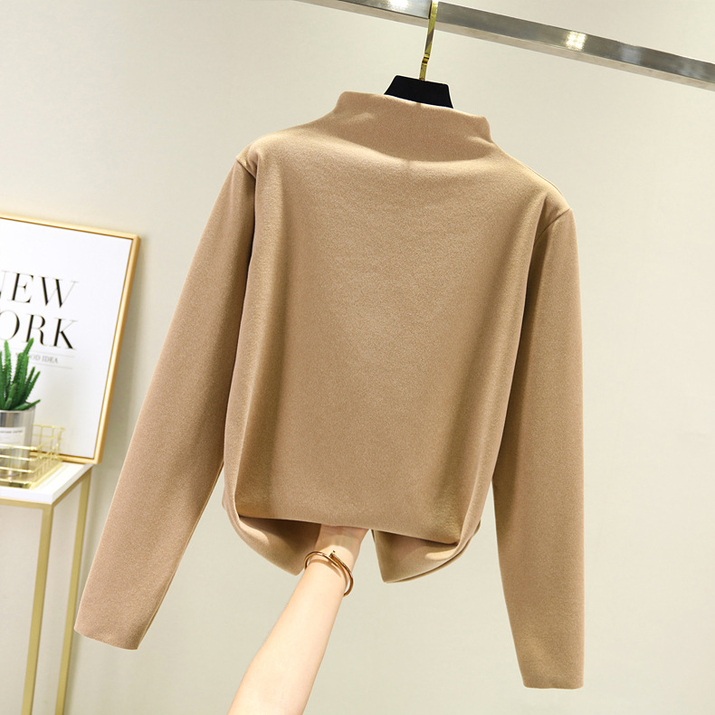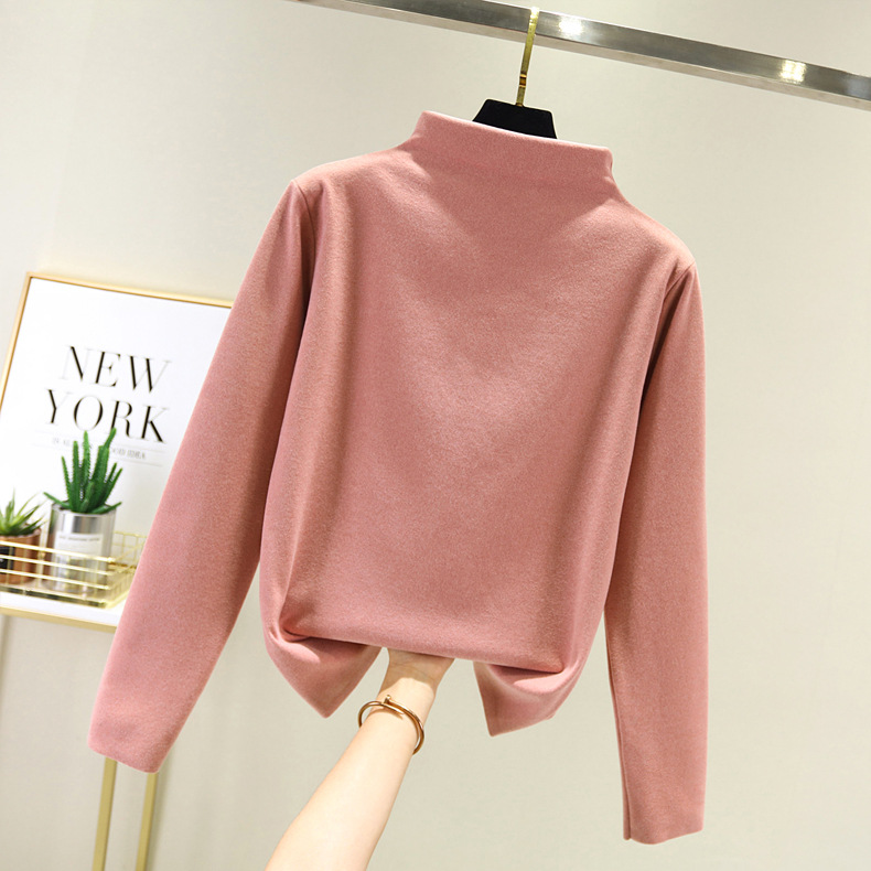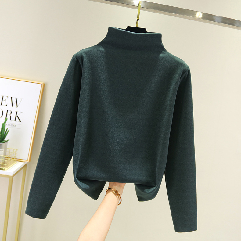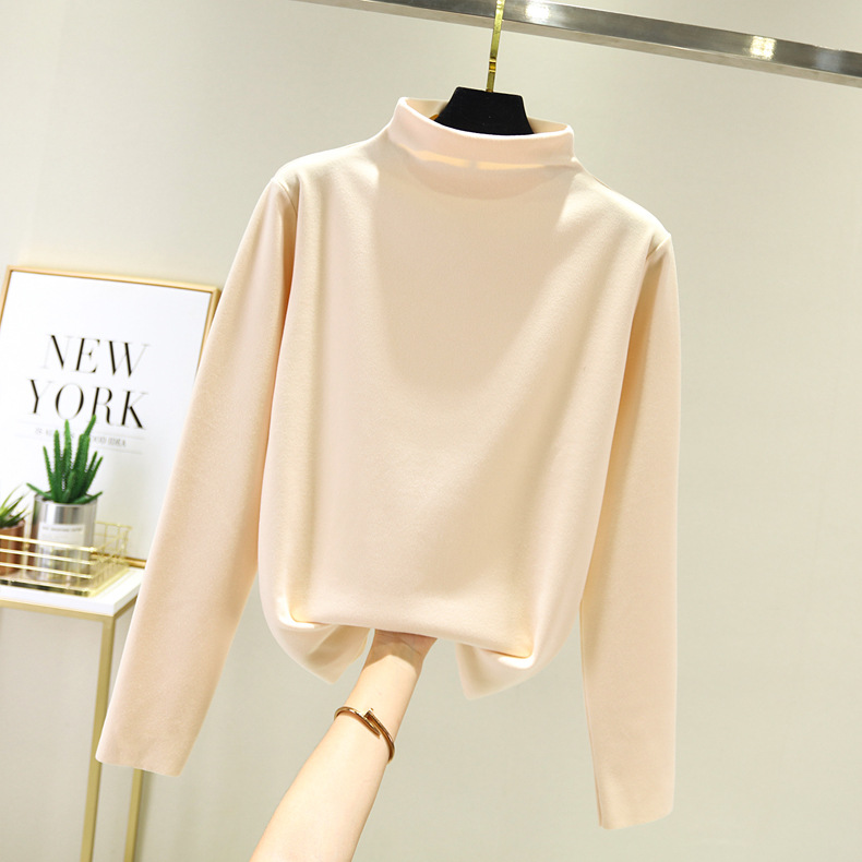 독일 벨벳 따뜻한 옷 여성의 가을과 겨울 긴팔 두꺼운 기모 난방 세미 하이 칼라 베이스 셔츠 올매치 슬림 핏 가을 옷