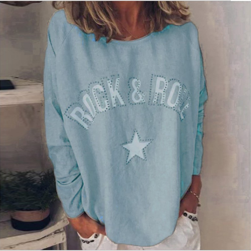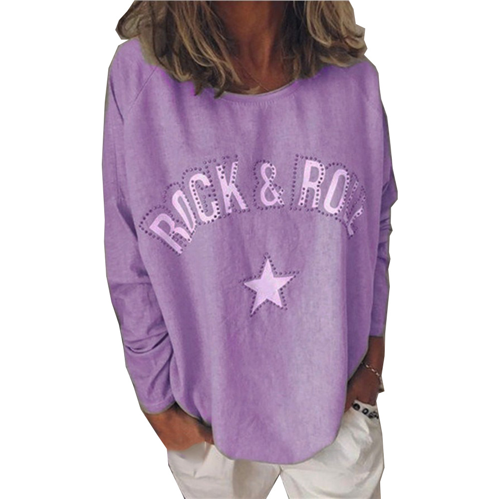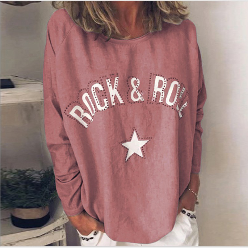 유럽과 미국 국경 간 새로운 가을과 겨울 여성 티셔츠 2023 아마존 베스트 셀러 프린트 다이아몬드 박힌 라운드 넥 긴팔 스웨터