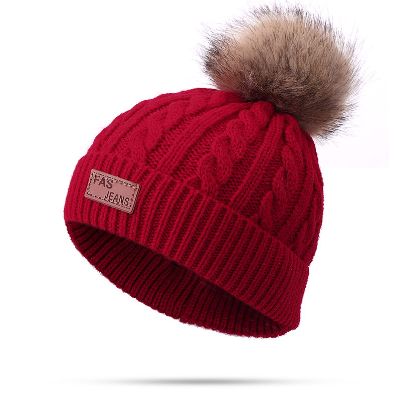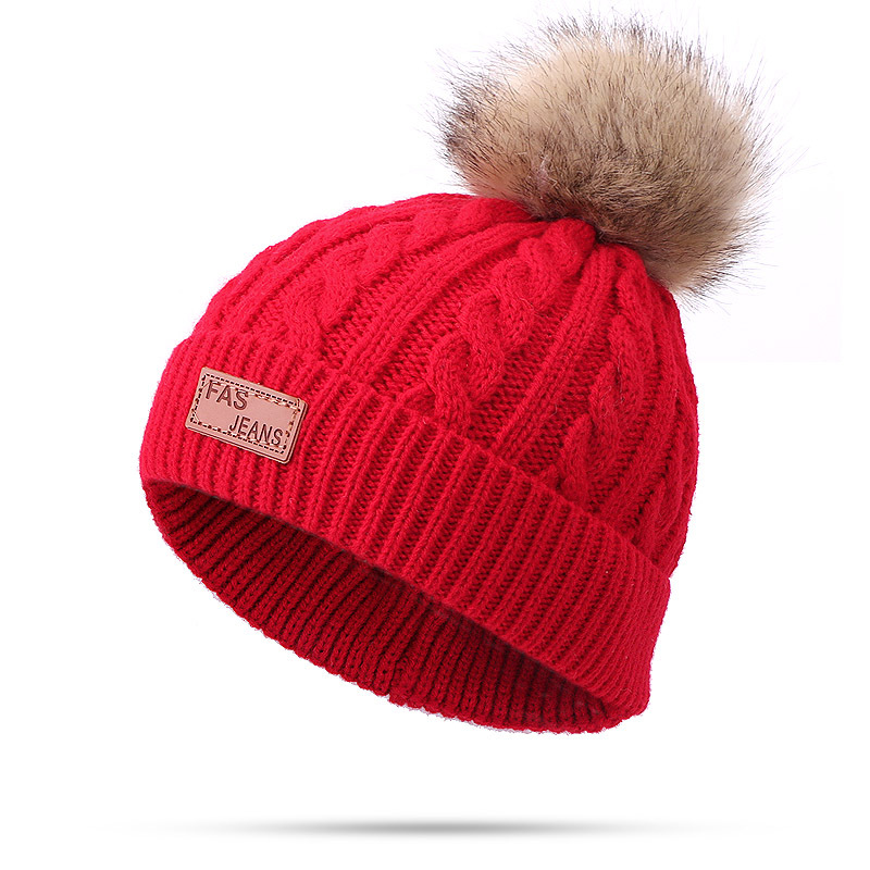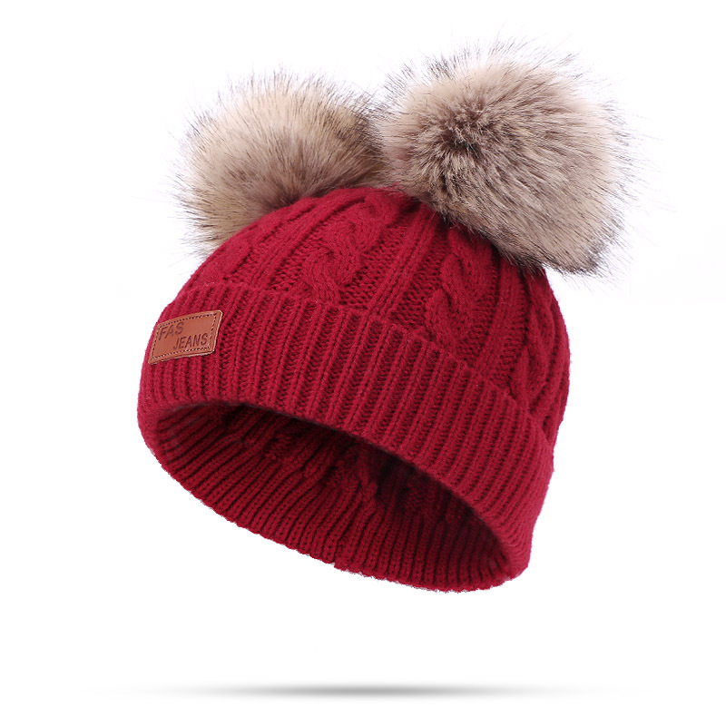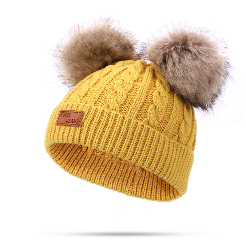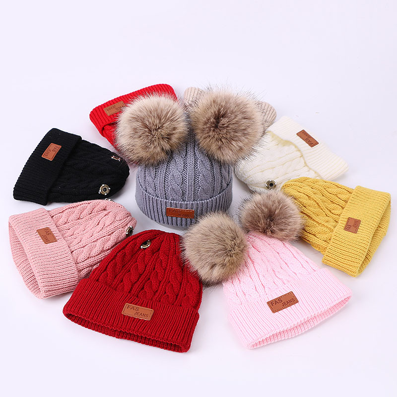 어린이 트위스트 가짜 볼 캡 가죽 표준 더블 볼 겨울 아크릴 니트 따뜻한 리얼 볼 모자 해외 무역 AliExpress