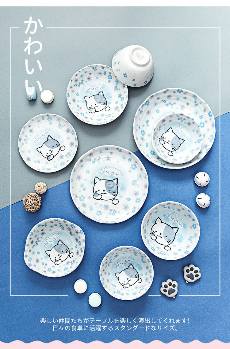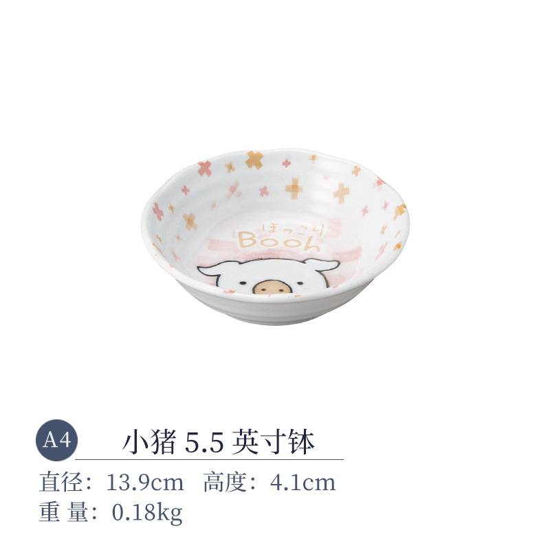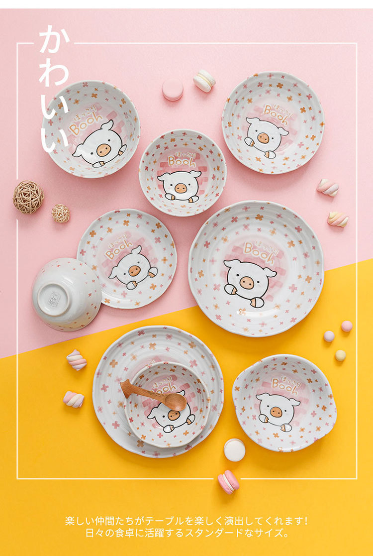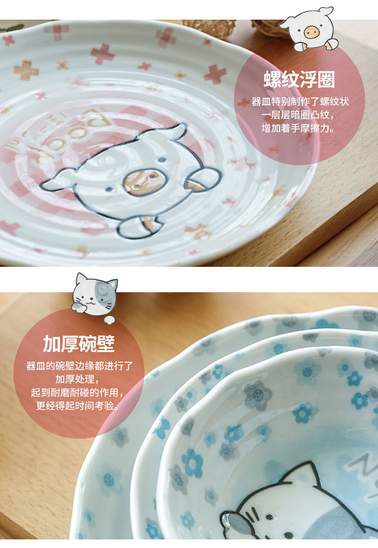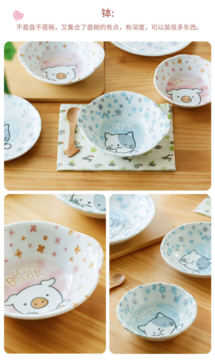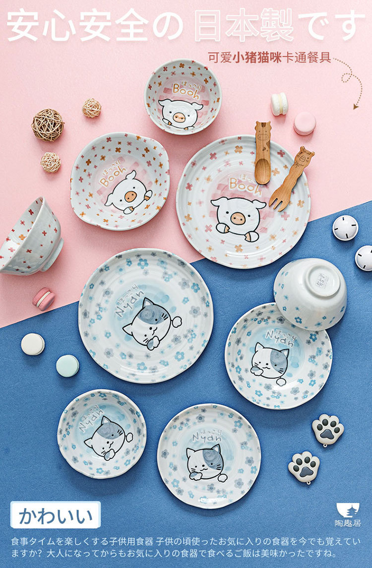 일본 수입 미노 만화 고양이 새끼 돼지 식기 언더글레이즈 색상 건강한 세라믹 밥그릇 어린이 귀 그릇스토어 가기