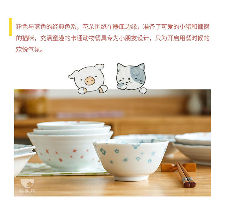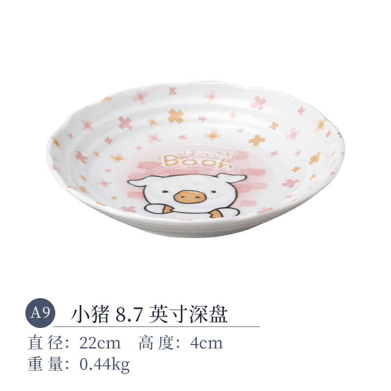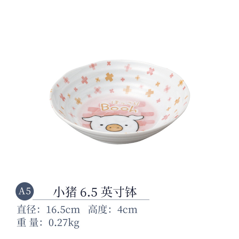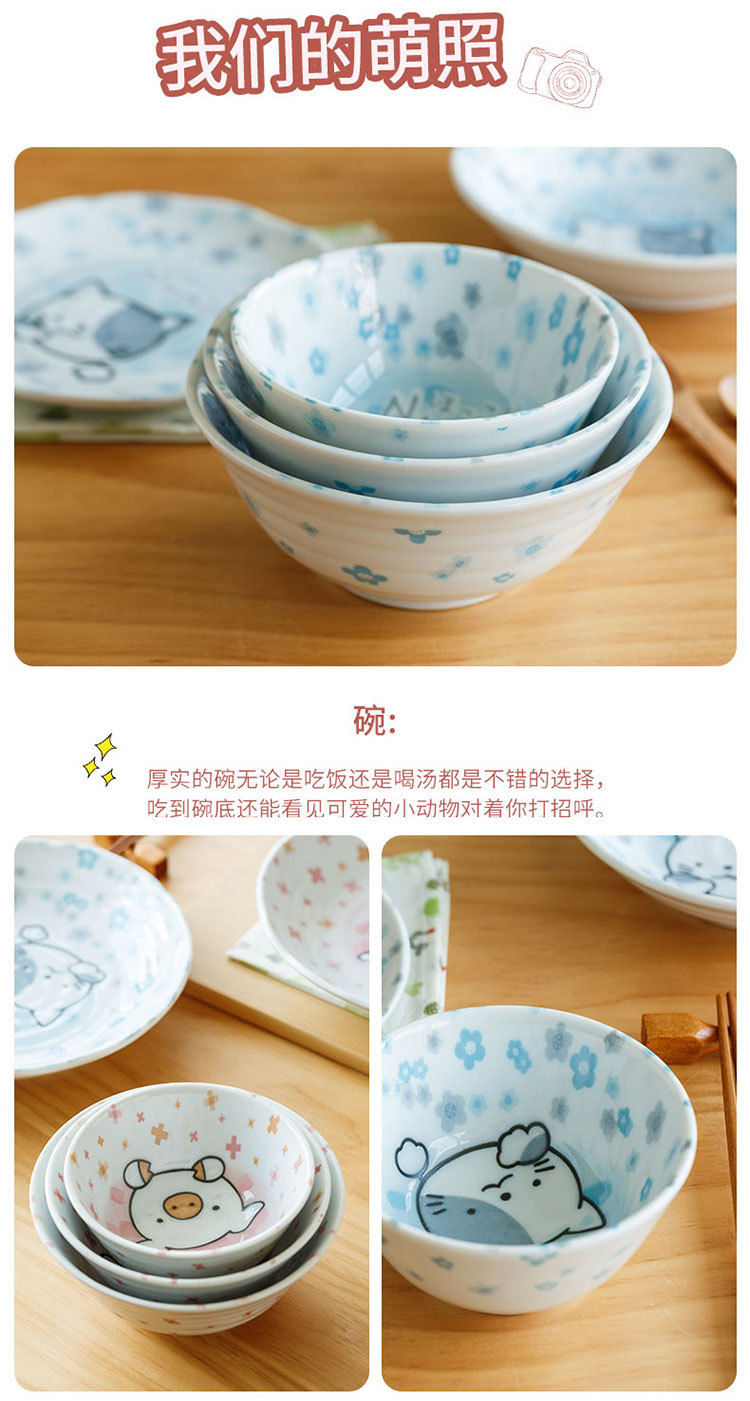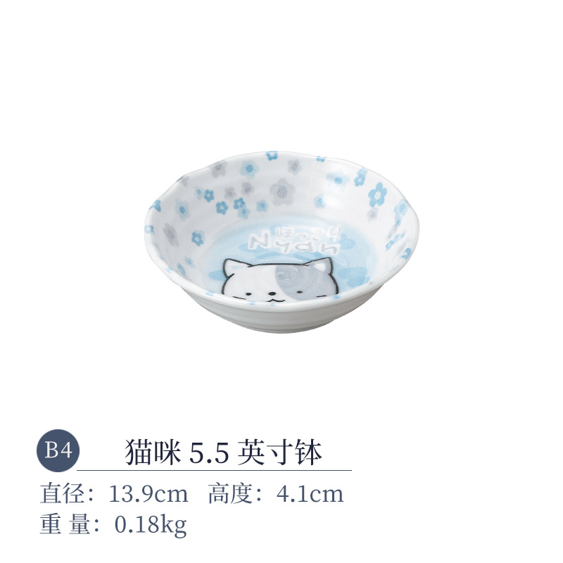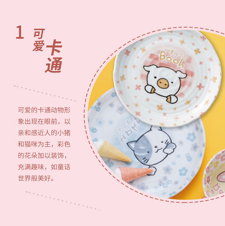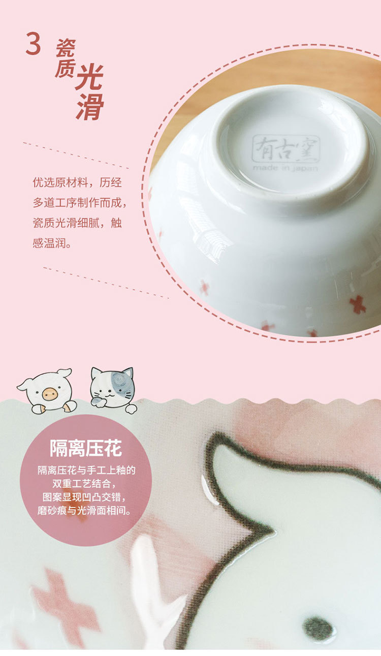 일본 수입 미노 만화 고양이 새끼 돼지 식기 언더글레이즈 색상 건강한 세라믹 밥그릇 어린이 귀 그릇스토어 가기