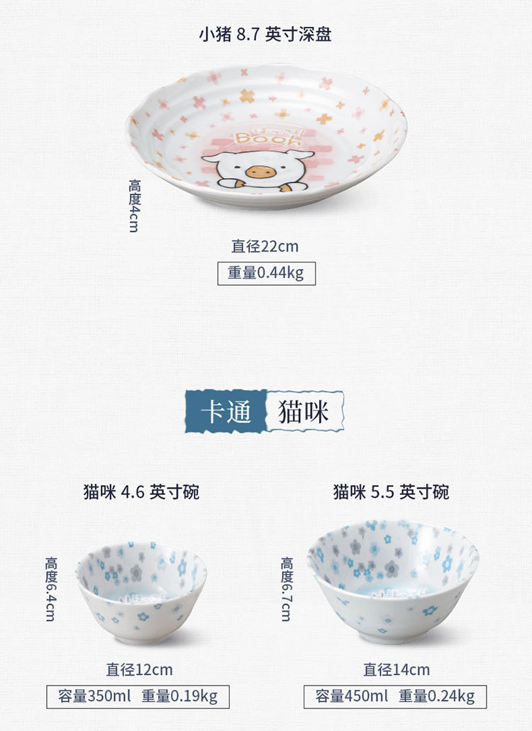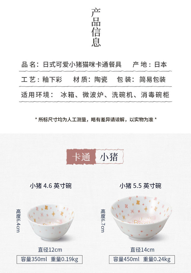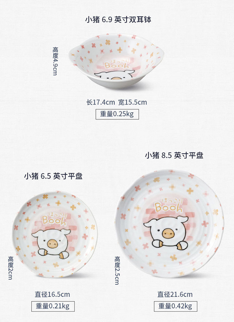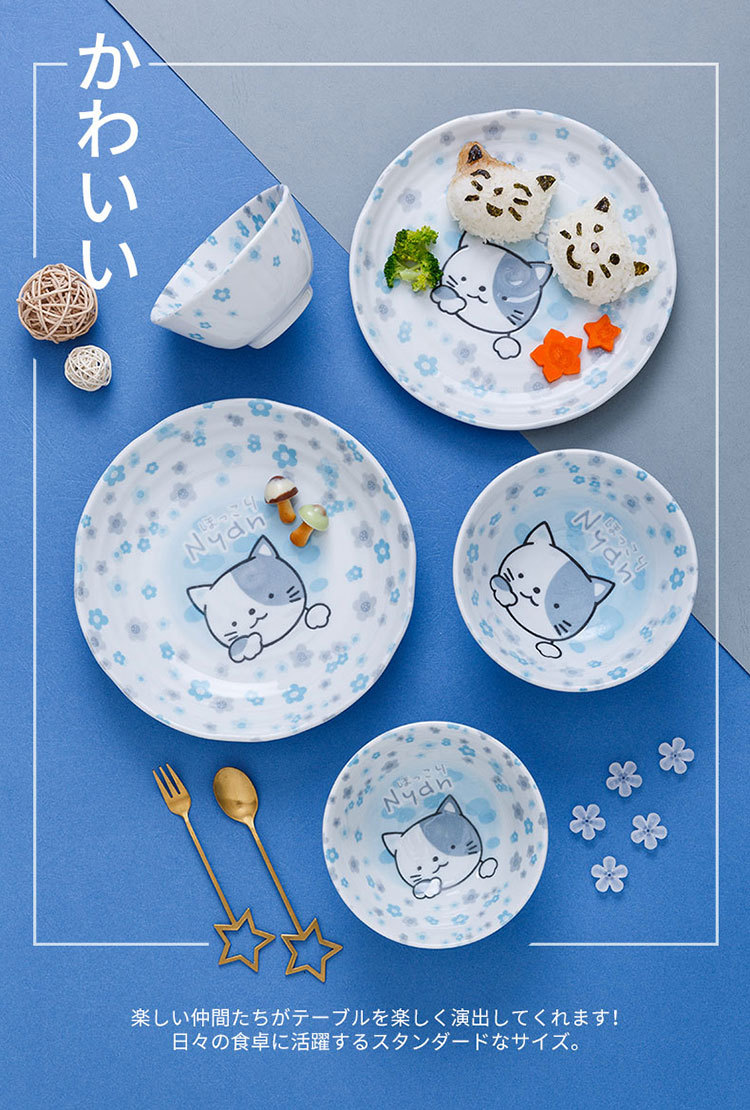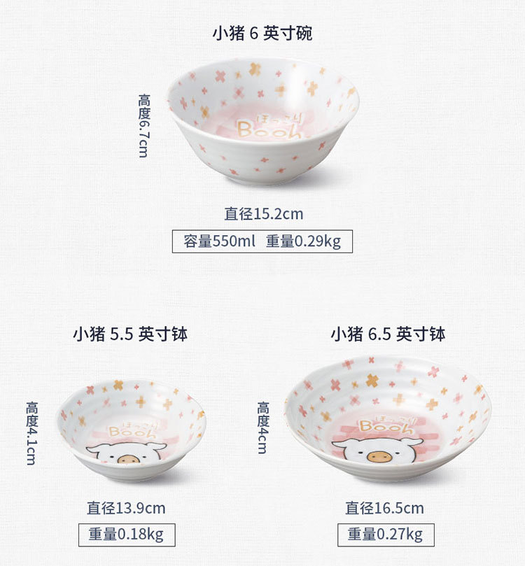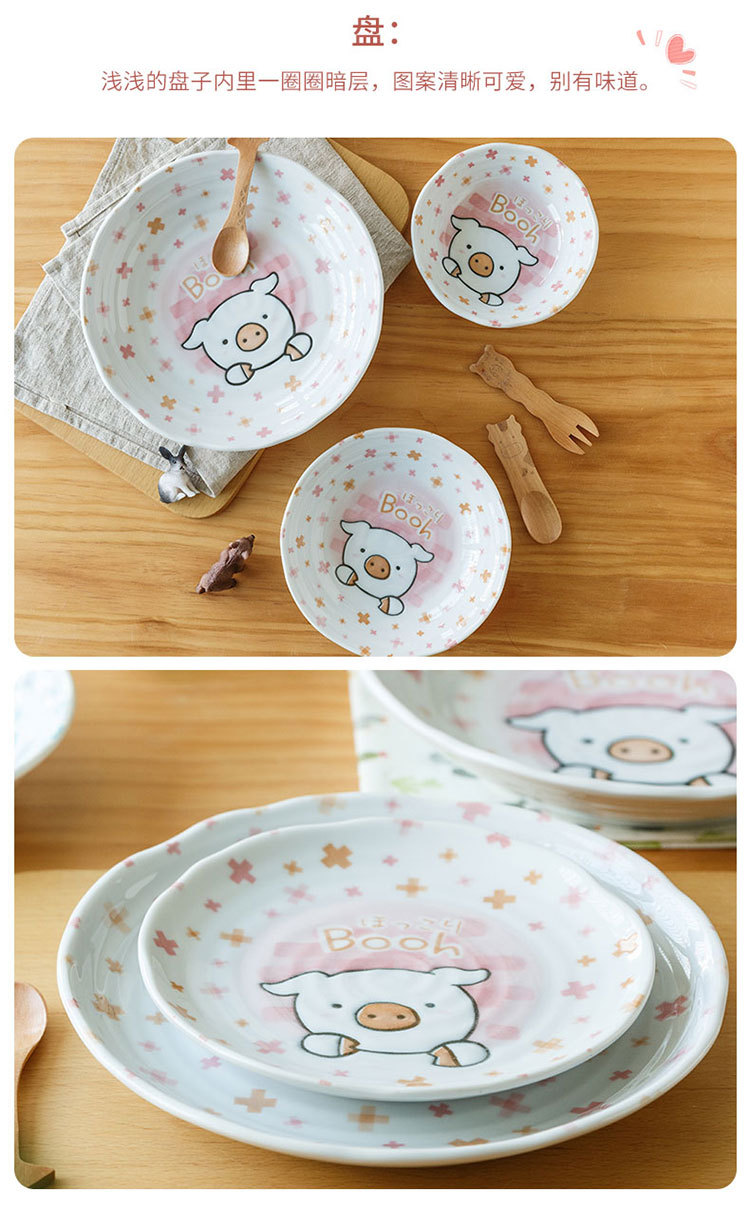 일본 수입 미노 만화 고양이 새끼 돼지 식기 언더글레이즈 색상 건강한 세라믹 밥그릇 어린이 귀 그릇스토어 가기