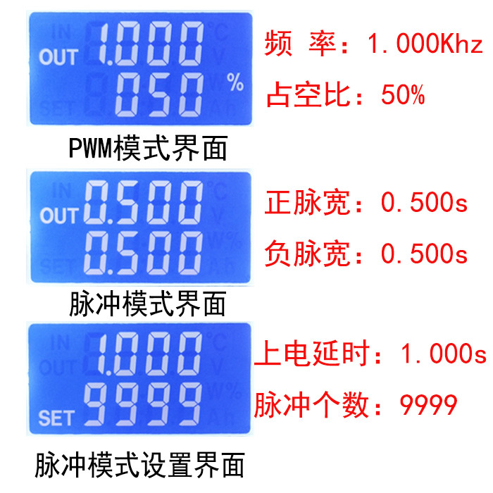 3.2 PWM模式(显示屏有“%”为PWM模式)