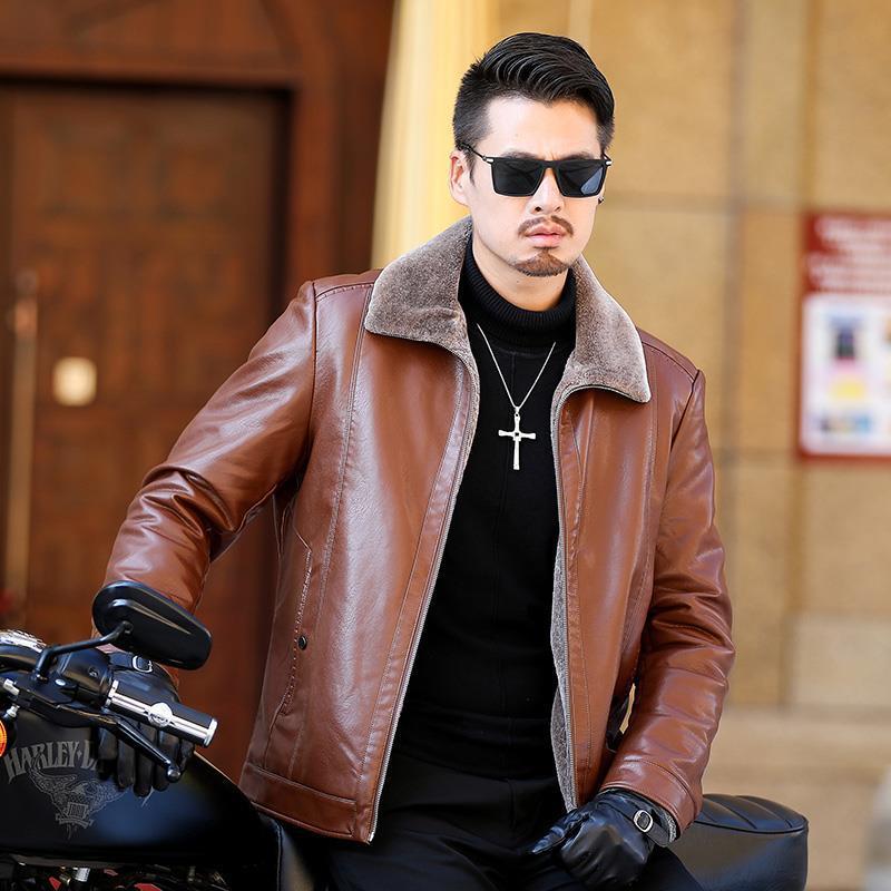 가죽 남성 코트 중년 Haining 모피 중년 Pu레더 겨울 기모 두꺼운 가죽 자켓 남자의 아빠 옷스토어 가기