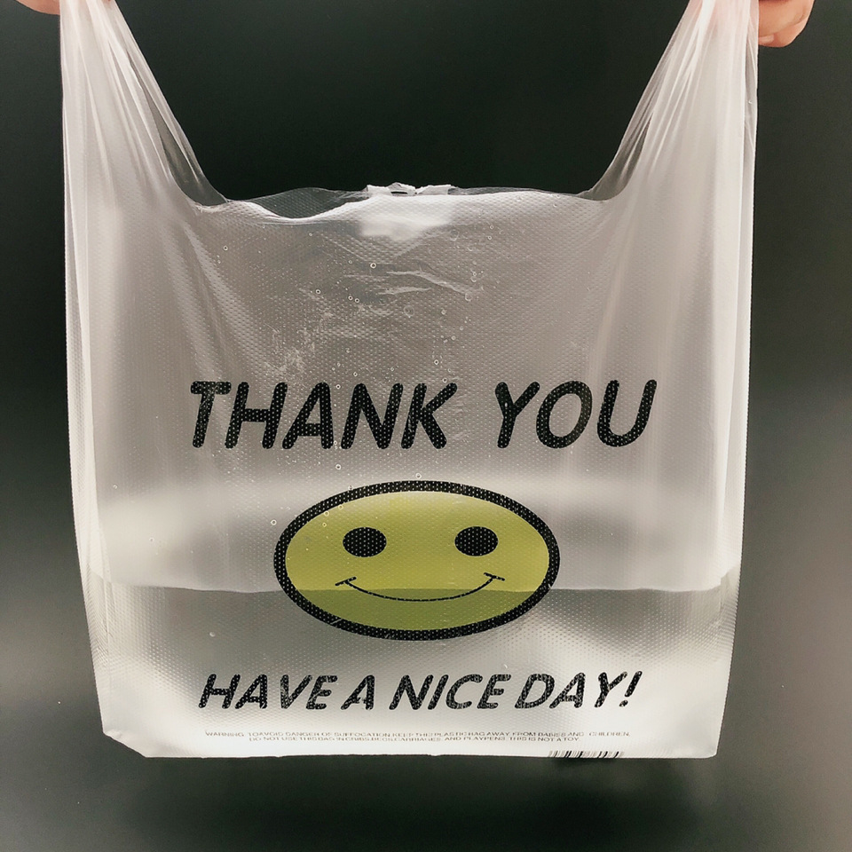 투명 비닐 봉투 스마일 얼굴 조끼 조끼 빨간 가방 슈퍼마켓 쇼핑 테이크 아웃 포장 과일 가방 도매