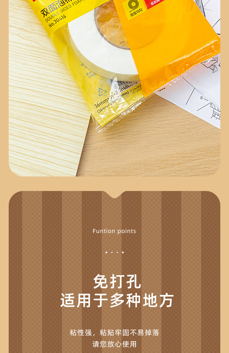 접착 종이 테이프가있는 델리 폼 양면 접착 테이프 석면 가정용 장식 테이프 사무실 테이프 두껍게 벗겨지기 쉬운스토어 가기