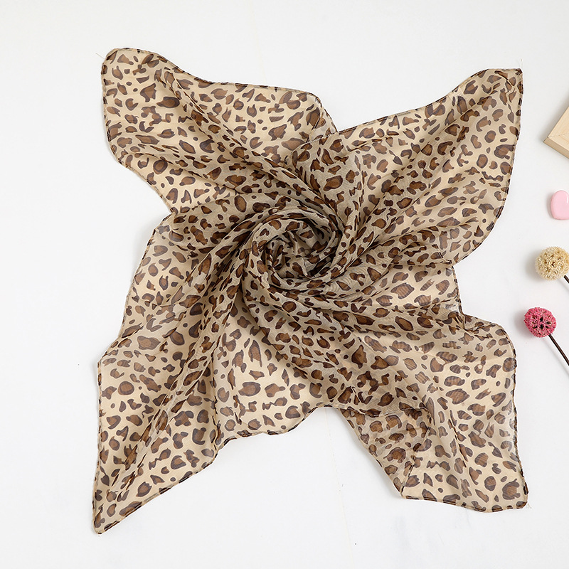 한국식 가을 레오파드 무늬 패션 작은 실크 스카프 인쇄 전문 장식 따뜻한 스카프 유럽과 미국 여성을위한 작은 광장 스카프