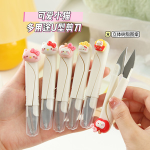 卡通可爱小猫U型塑料弹簧纱剪十字绣线头剪刀家用缝纫钓鱼线剪子