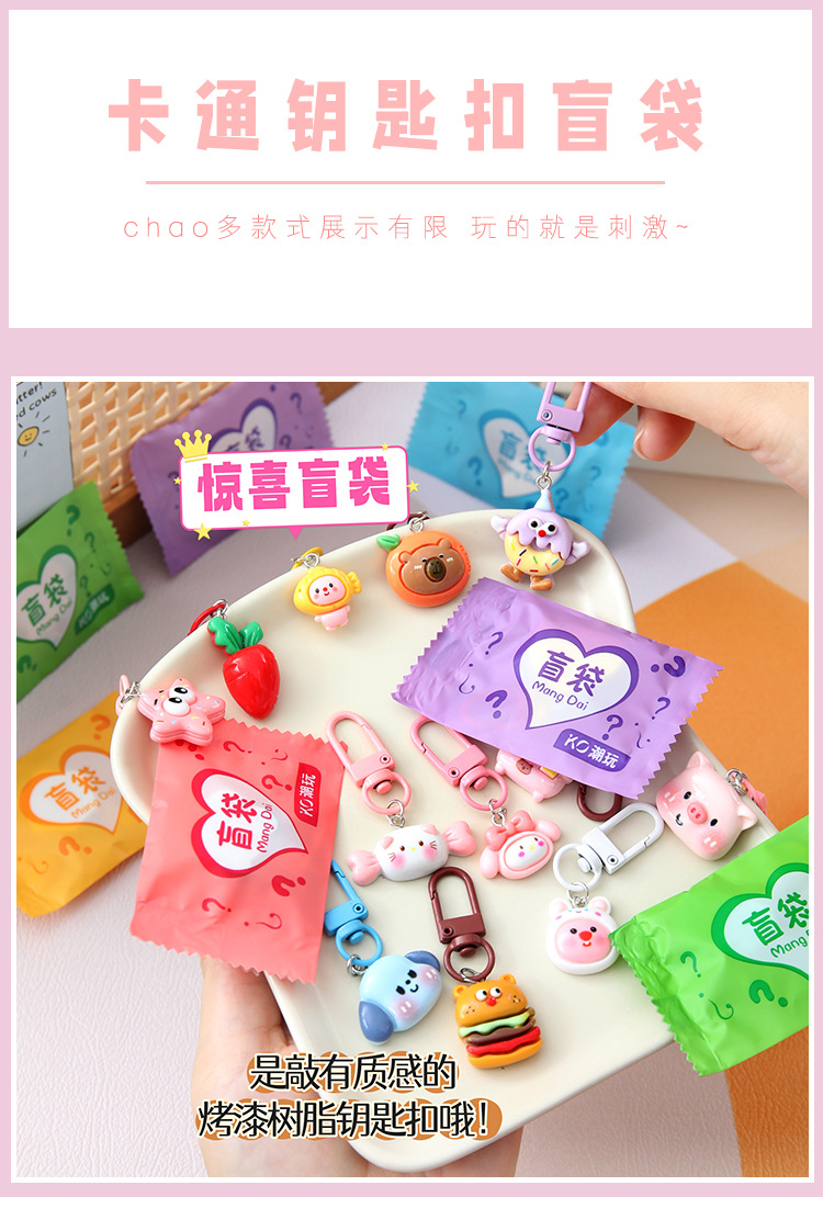 새로운 귀여운 만화 키 체인 블라인드 백 깜짝 어린이 선물 스톨 선물 소녀 하트 다목적 펜던트스토어 가기
