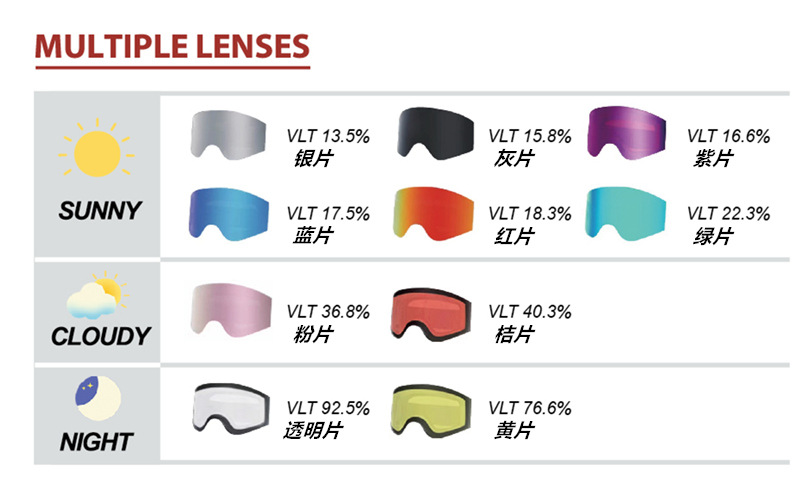 一:TPU软框,全面REVO镀膜PC片,意大利双层防雾片,三层海绵,滴胶双面绒松紧带。