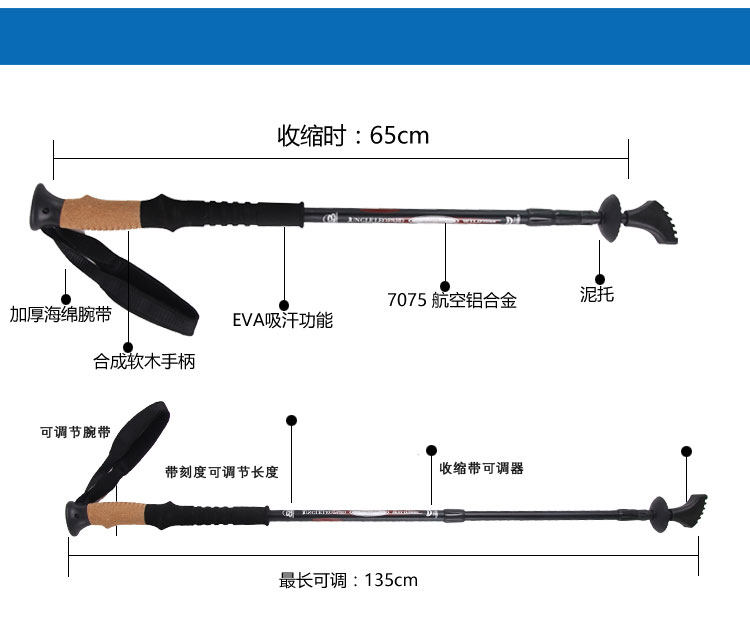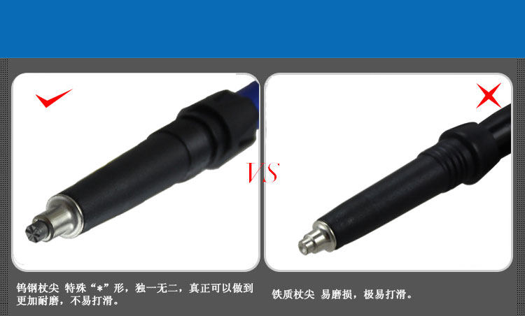 【杖尖】强度高耐磨碳钨钢,“*”字型处理,增加抓地和防滑性