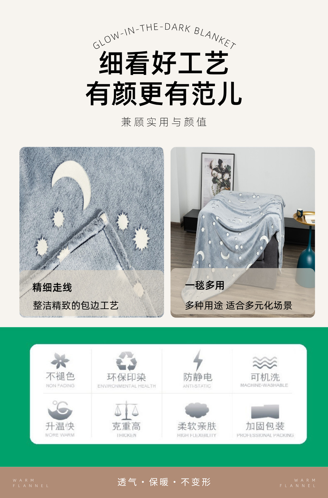 크로스보더 플란넬 야광 담요 도매 사무실 낮잠 소파 에어컨 담요 산호 벨벳 어린이 담요