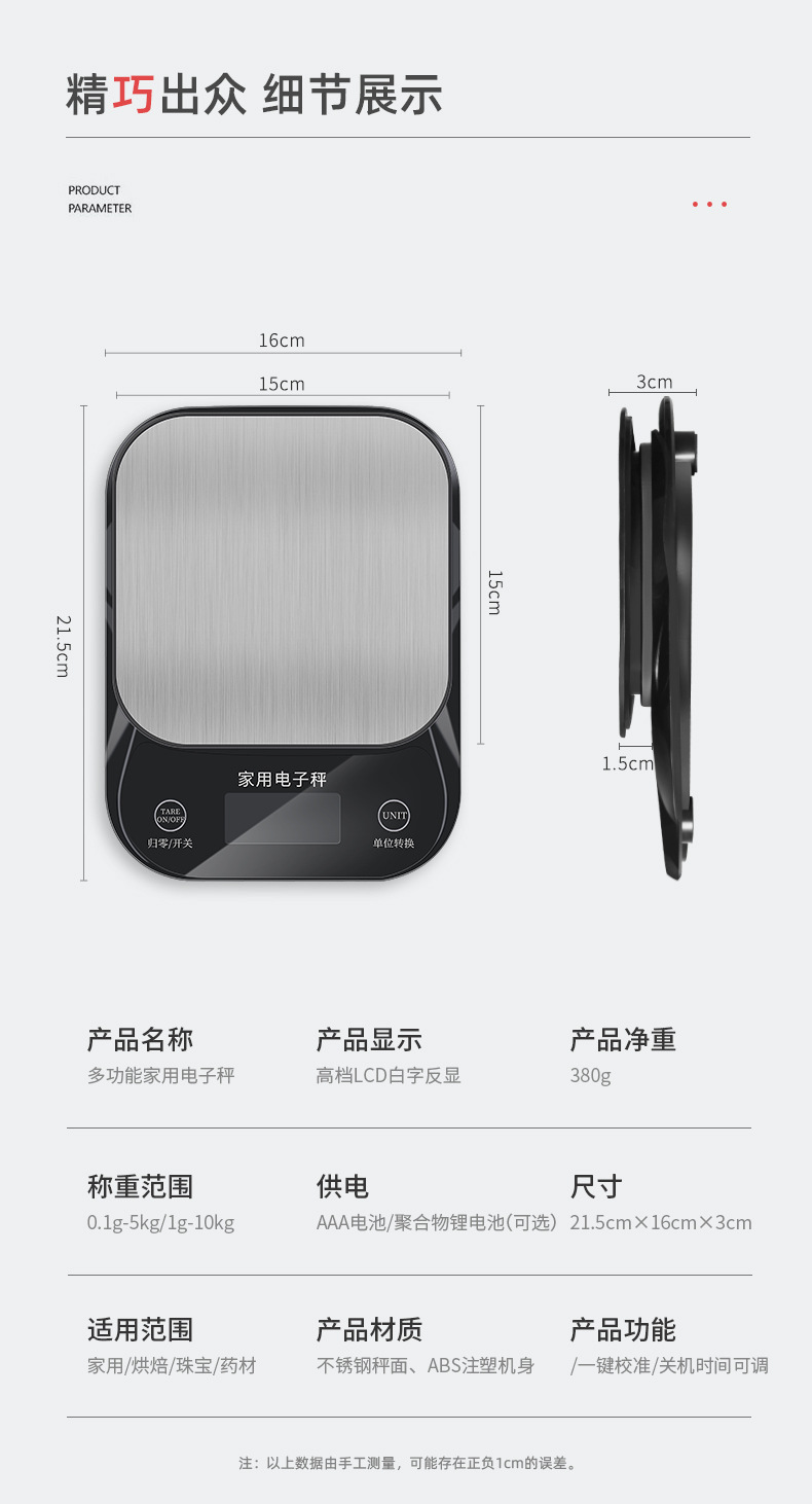 量程:3kg/0.1g 5kg/0.1g 10kg/1g