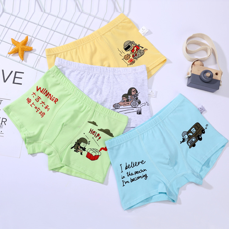 [4 박스] 아동 속옷 남아 면 4 코너 박서 반바지 아동용 대형 아동용 리틀 보이 면