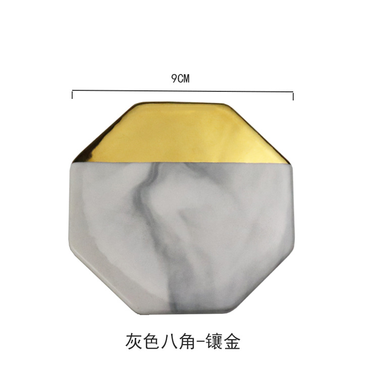 북유럽 인 대리석 코스터 크리에이티브 세라믹 코스터 코르크 매트 팔레트가있는 전기도금 대리석 코스터스토어 가기