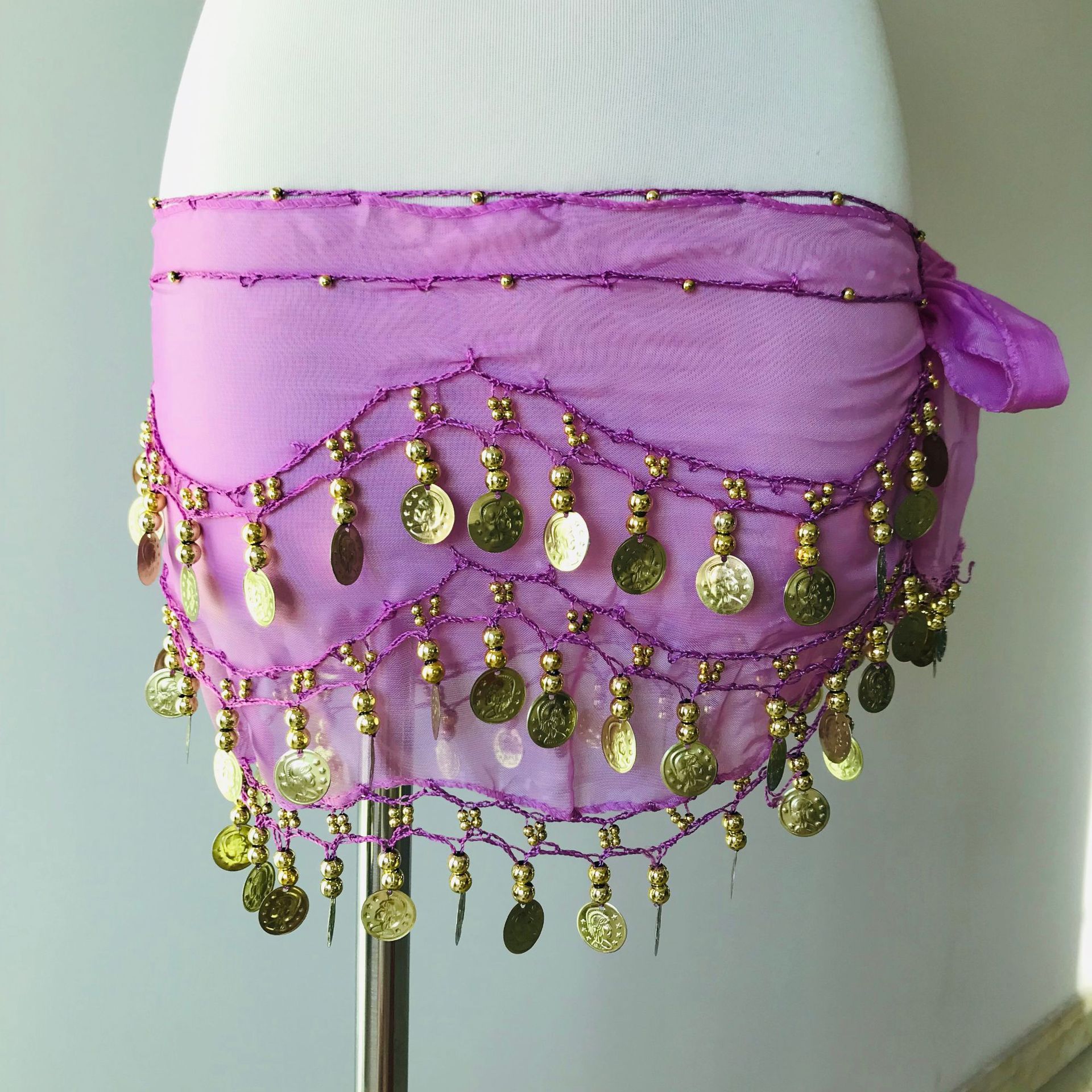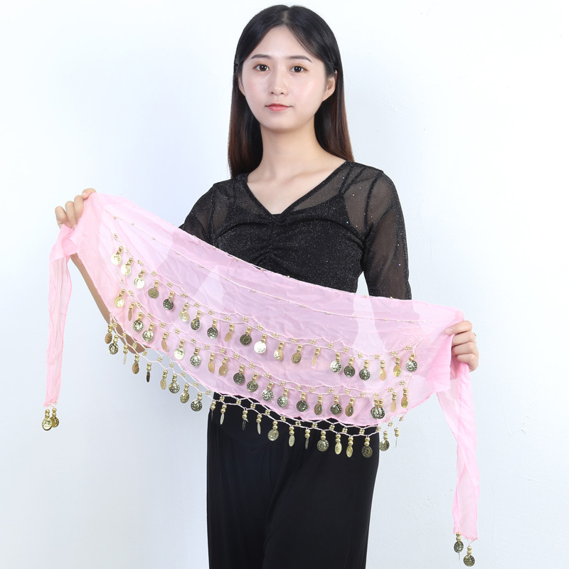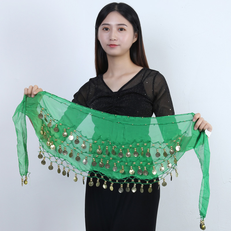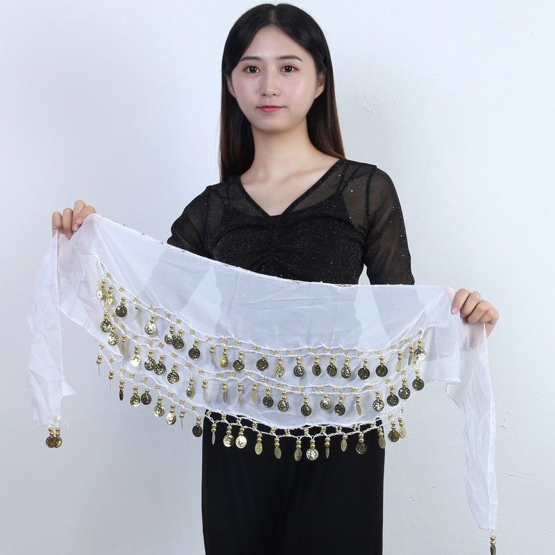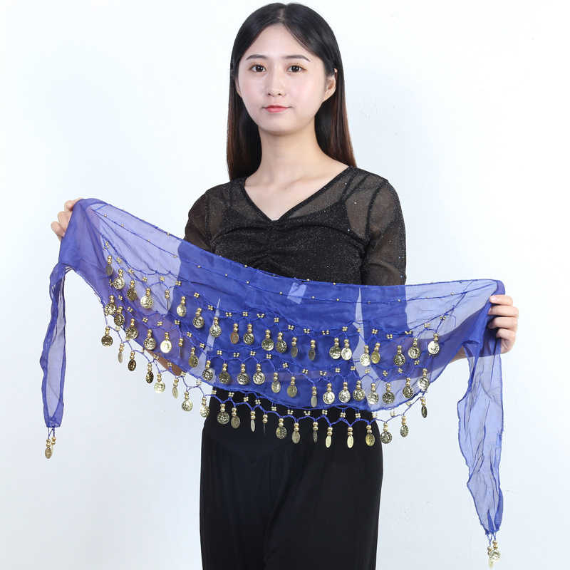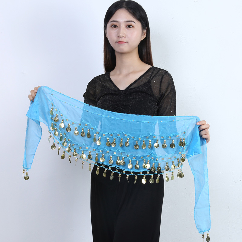 재고 도매 밸리 댄스 허리 체인 72 골드 코인 허리 씰 인도 댄스 3 층 쉬폰 벨트 힙 타월 액세서리 세대 머리스토어 가기