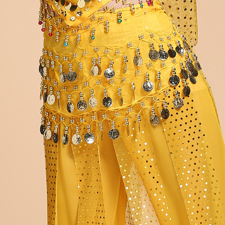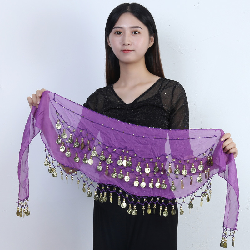 재고 도매 밸리 댄스 허리 체인 72 골드 코인 허리 씰 인도 댄스 3 층 쉬폰 벨트 힙 타월 액세서리 세대 머리
