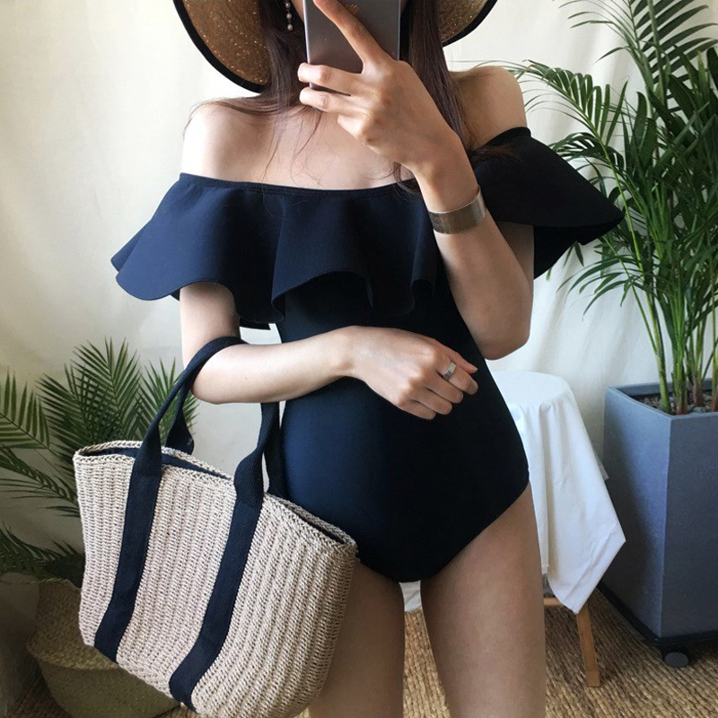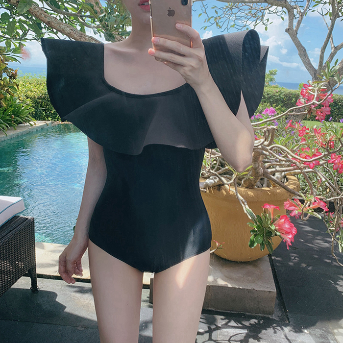 수영복 여성용 배꼽 덮기 슬리밍 섹시 2019 새로운 수영복 온천 보수적 인 원피스 삼각형 프릴 수영복스토어 가기