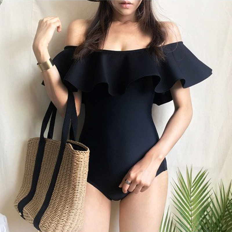 수영복 여성용 배꼽 덮기 슬리밍 섹시 2019 새로운 수영복 온천 보수적 인 원피스 삼각형 프릴 수영복
