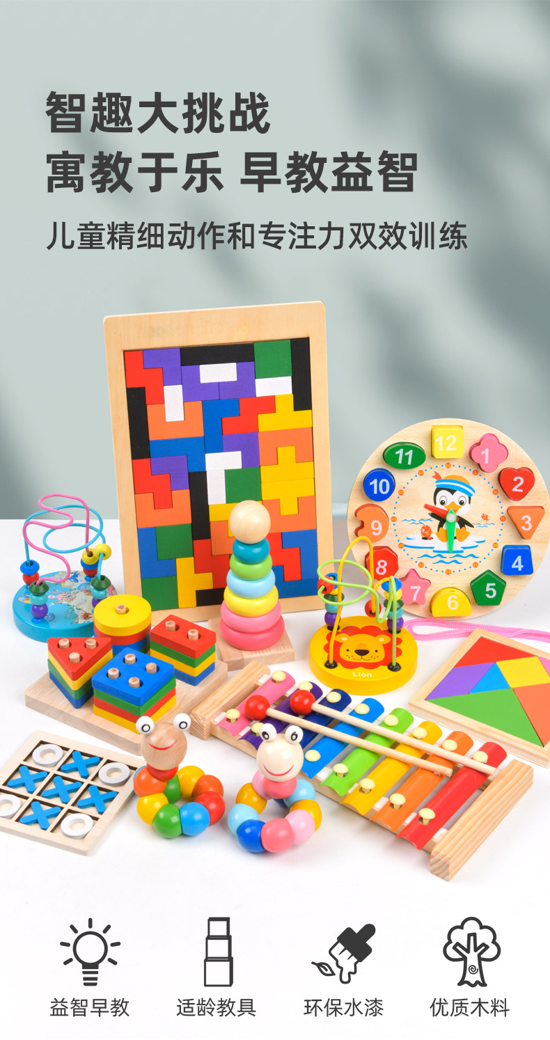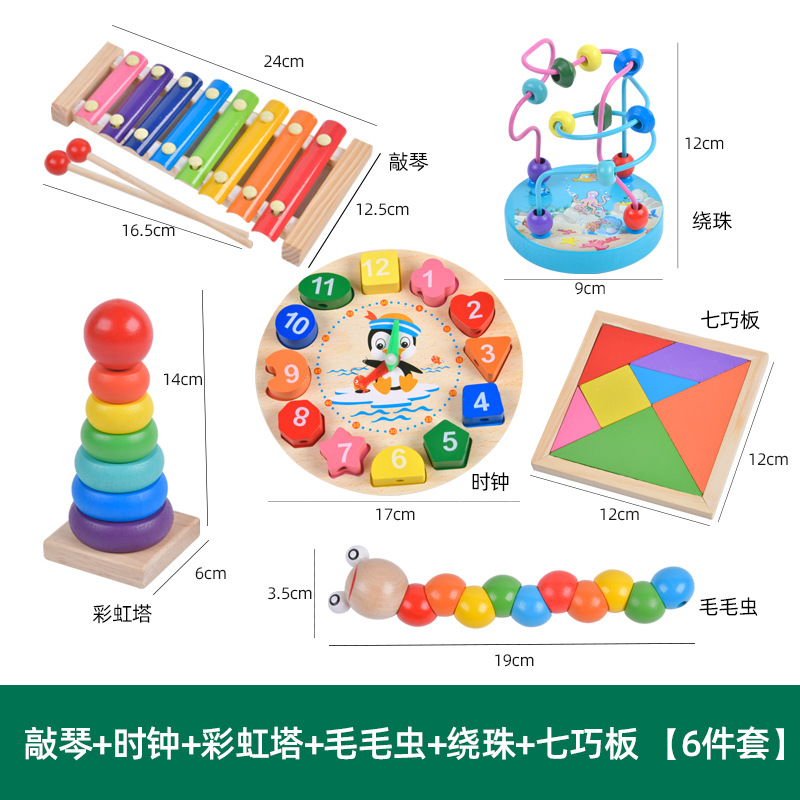 • 피아노 두드리기 + 시계 + 창홍탑 + 애벌레 + 구불구불한 구슬 + 칠교놀이 [6종 세트]