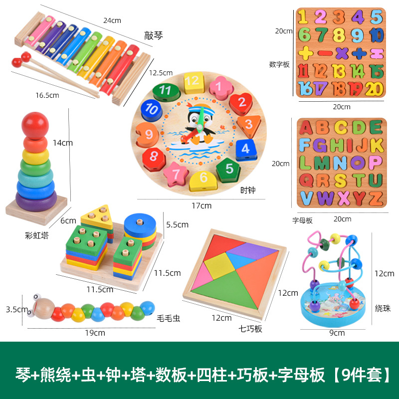 • 피아노 두드리기 + 구슬 감기 + 벌레 + 종 + 탑 + 숫자판 + 4개 기둥 + 직소 퍼즐 + 알파벳판 [9종 세트]