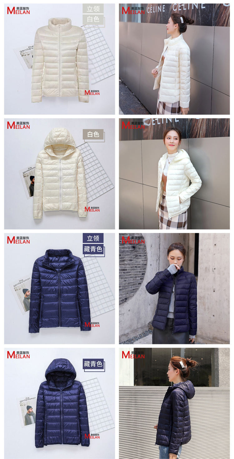 여성용 다운 재킷 2025 신상품 짧은 스타일 가볍고 두꺼운 보온 슬림핏 한국 스타일 화이트 덕다운 패션 재킷 도매스토어 가기