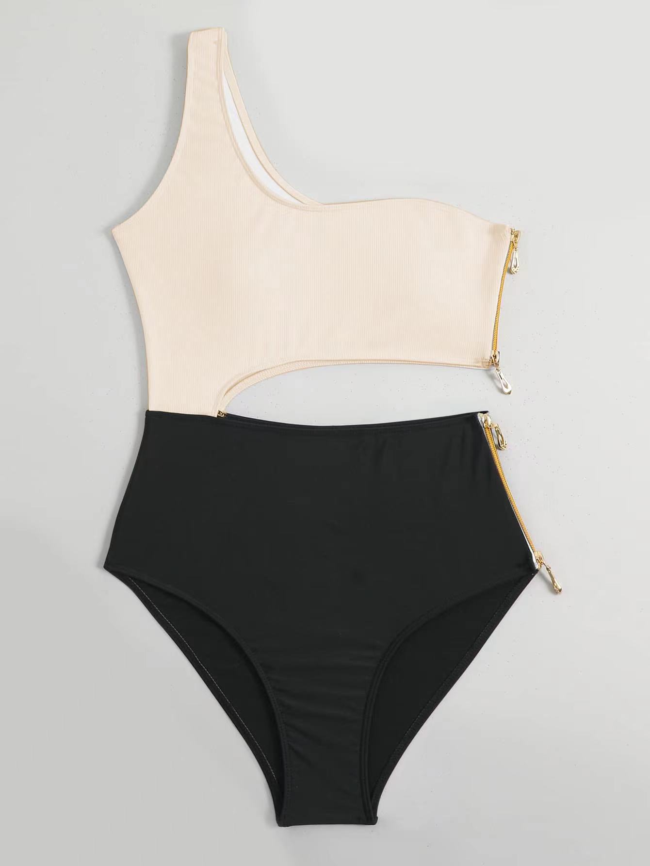 2022 새로운 원피스 수영복 섹시 숙녀 원 숄더 단색 비키니 AliExpress 원피스 수영복 지퍼 도매