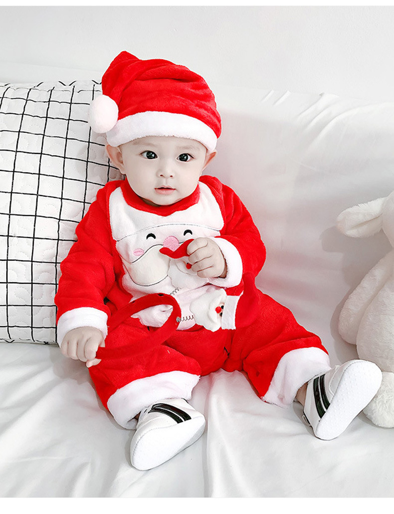 크리스마스 어린이 의류 도매 기모 후드 아기 점프 슈트 가을과 겨울 산타 클로스 버전의 옷 등반 세트스토어 가기