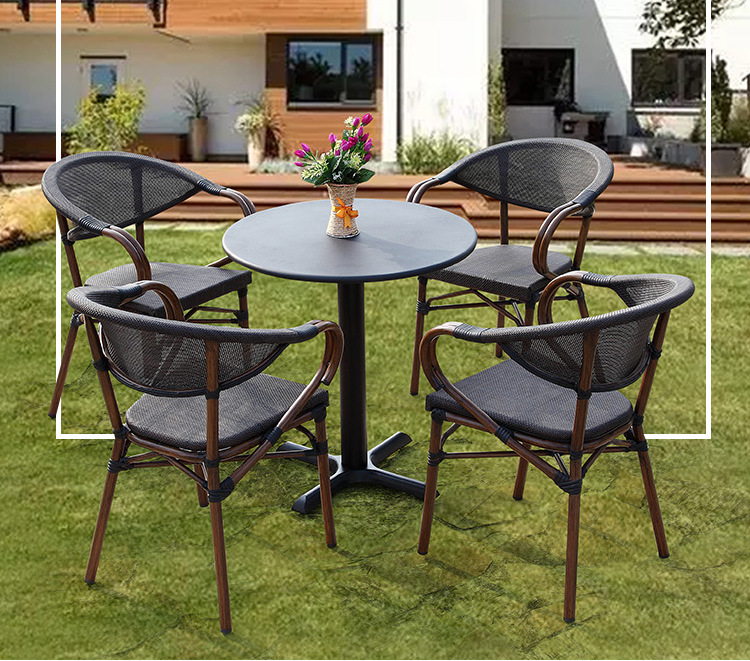 야외 테이블과 의자 캐주얼 외부 스윙 안뜰 메쉬 의자 발코니 레스토랑 야외 야외 카페 스타 바 테이블과 의자 조합