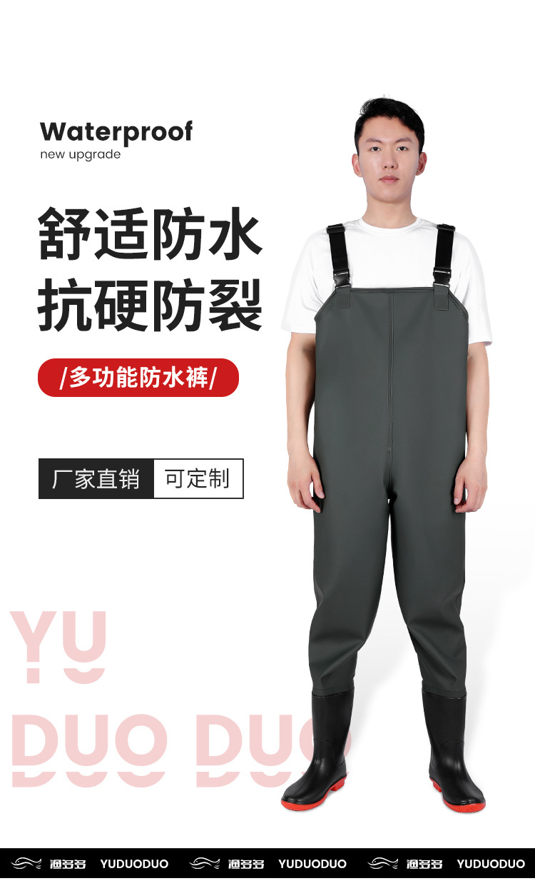 Yuduoduo 하프 길이 웨이더 공장 직접 판매 레인 팬츠 방수 의류 남성용 워터 팬츠 가죽 포크 두꺼운 물고기 낚시 바지