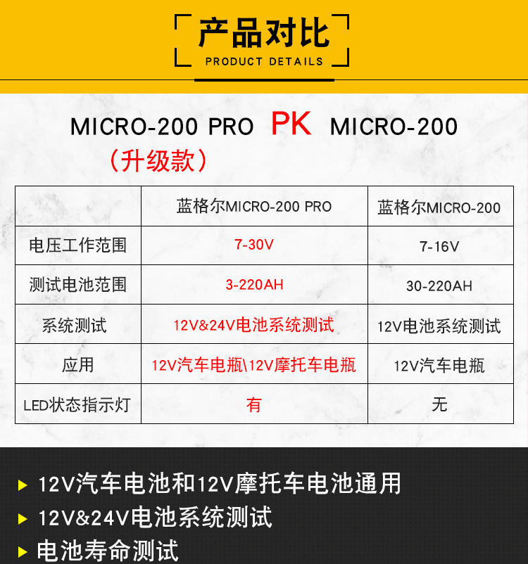 Langer 200PRO 대형 클립 자동차 배터리 테스터 오토바이 배터리 내부 저항 수명 분석 시작스토어 가기