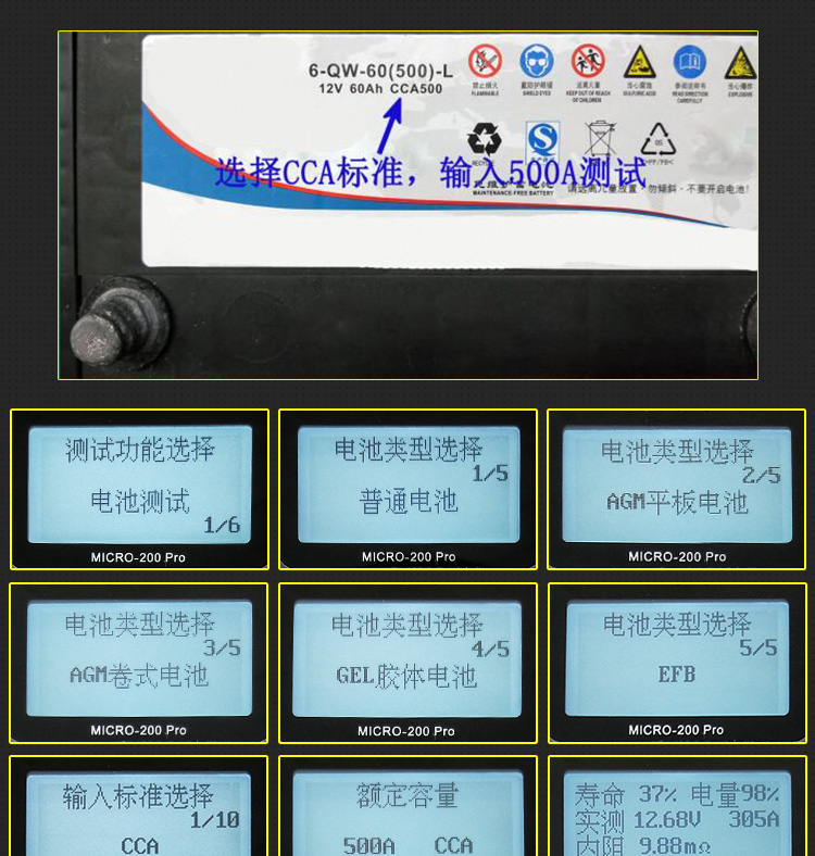 Langer 200PRO 대형 클립 자동차 배터리 테스터 오토바이 배터리 내부 저항 수명 분석 시작