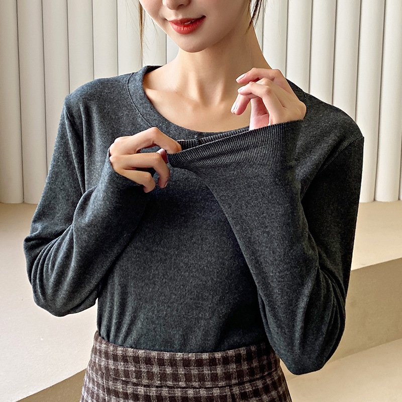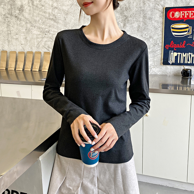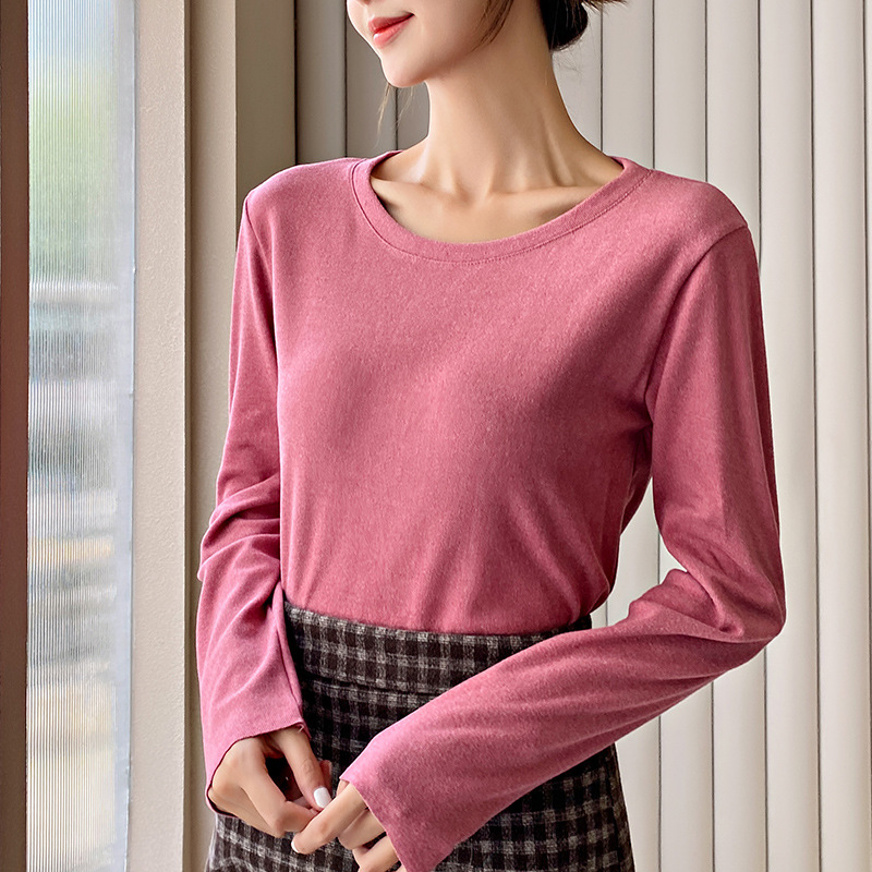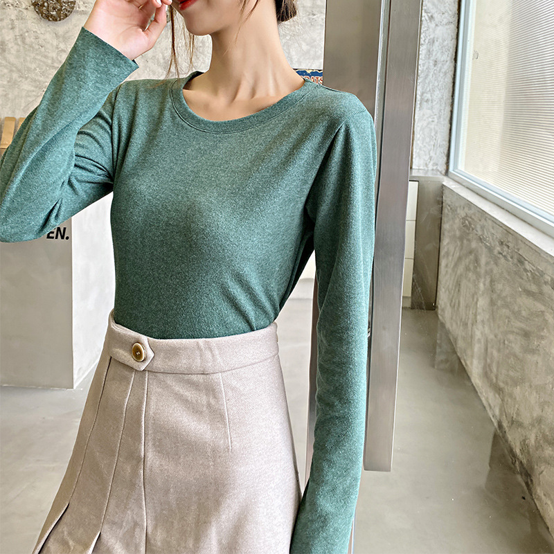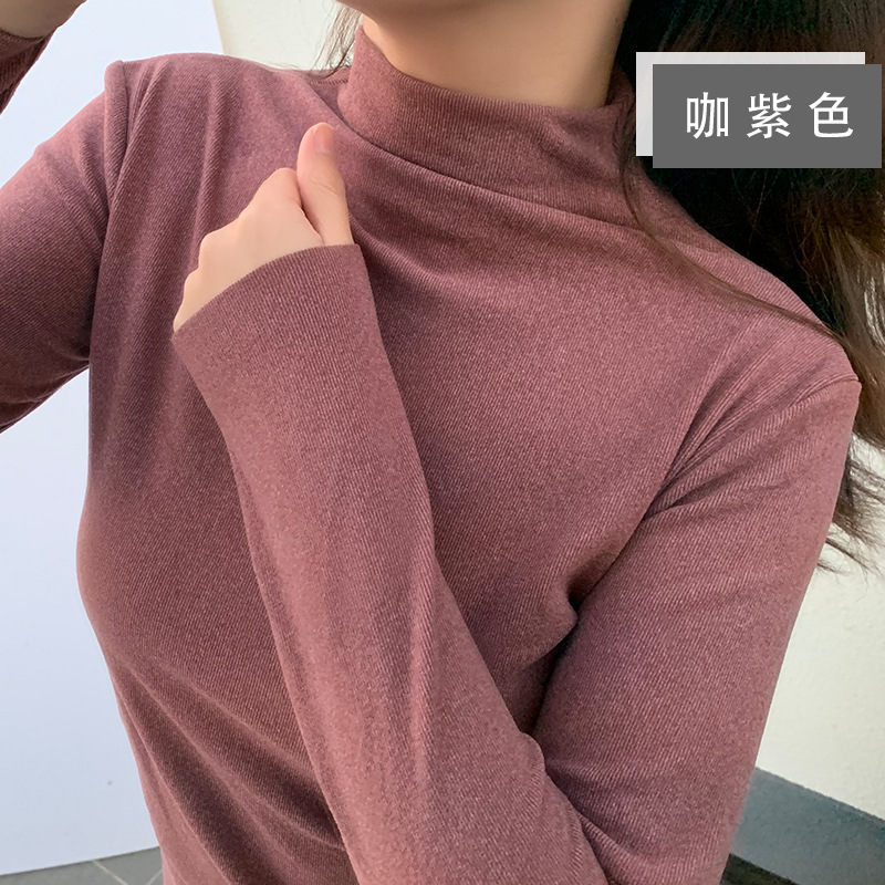 단색 양이온 베이스 셔츠 가을과 겨울 하프 하이 칼라 한국식 벨벳 따뜻한 탑 여성 기모 두꺼운 티셔츠스토어 가기