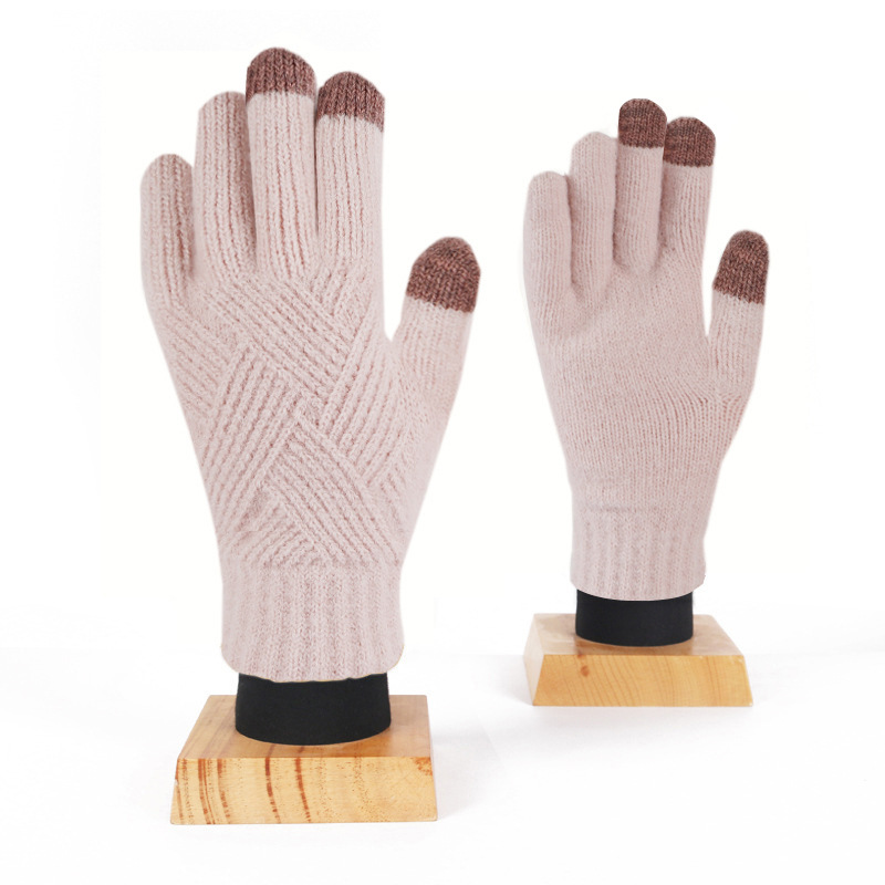 여성용 크로스보더 인기 겨울 니트 장갑, 이중 레이어 벨벳 두꺼운 터치스크린 장갑, 남성용 사이클링 방한 및 보온 장갑스토어 가기