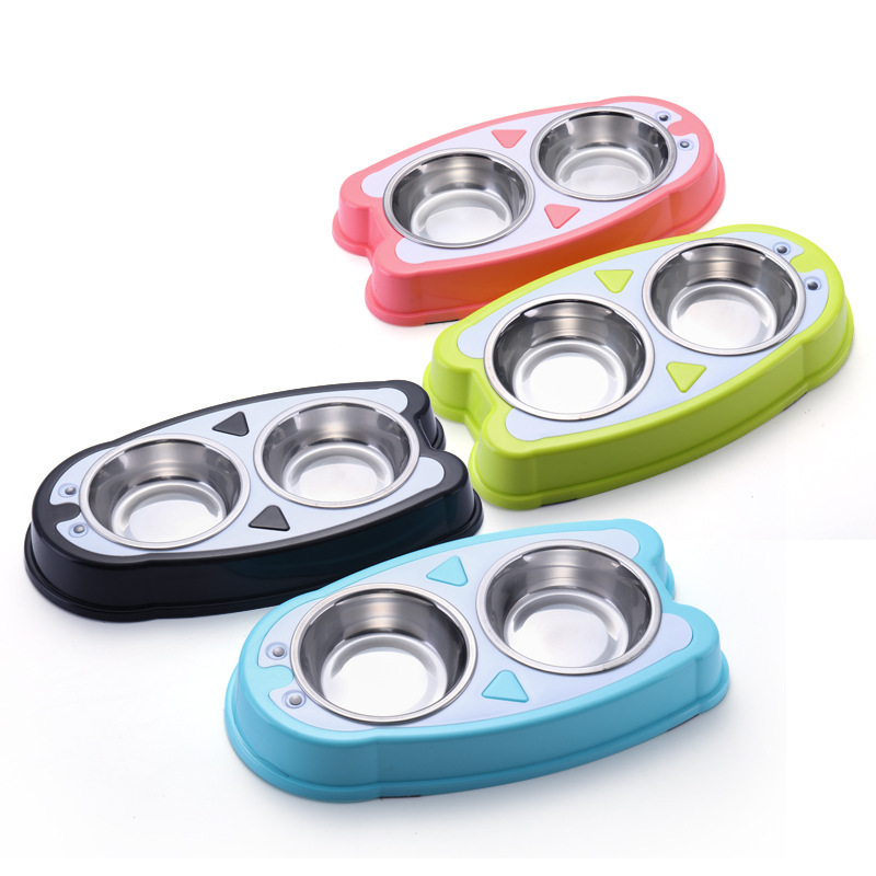 새로운 펭귄 만화 더블 그릇 애완 동물 스테인레스 스틸 개 그릇 만화 고양이 개 그릇 개 음식 그릇 색상 박스스토어 가기