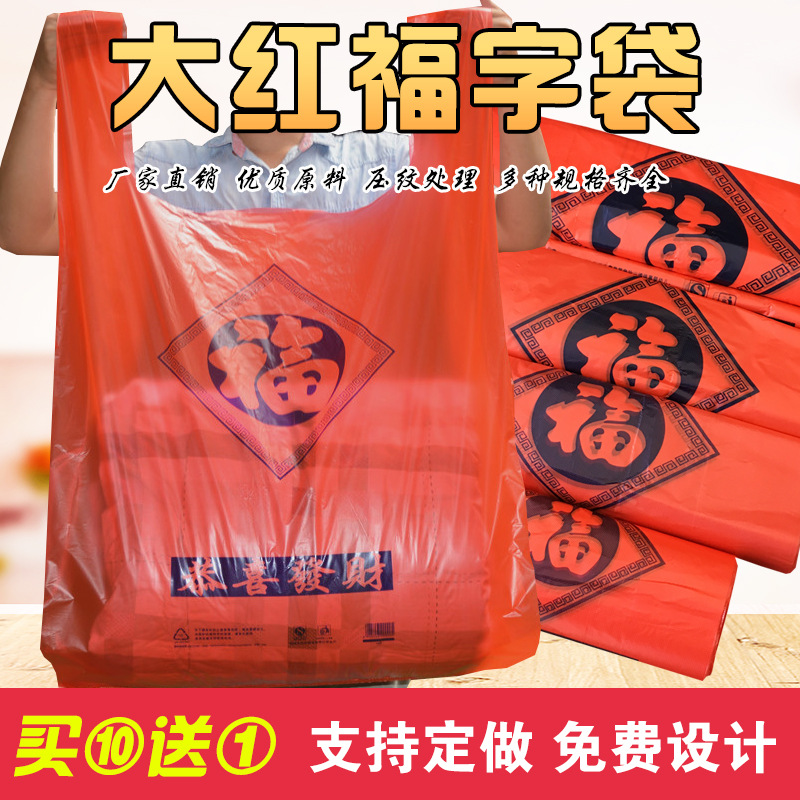 대형 복자(福) 모양 조끼형 가방, 슈퍼마켓 가방, 빨간색 플라스틱 선물 조끼형 손잡이 가방, 새 소재, 두껍고 내구성 있는 조끼형스토어 가기