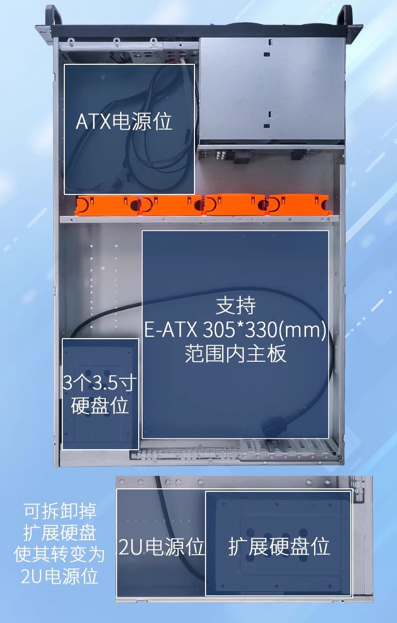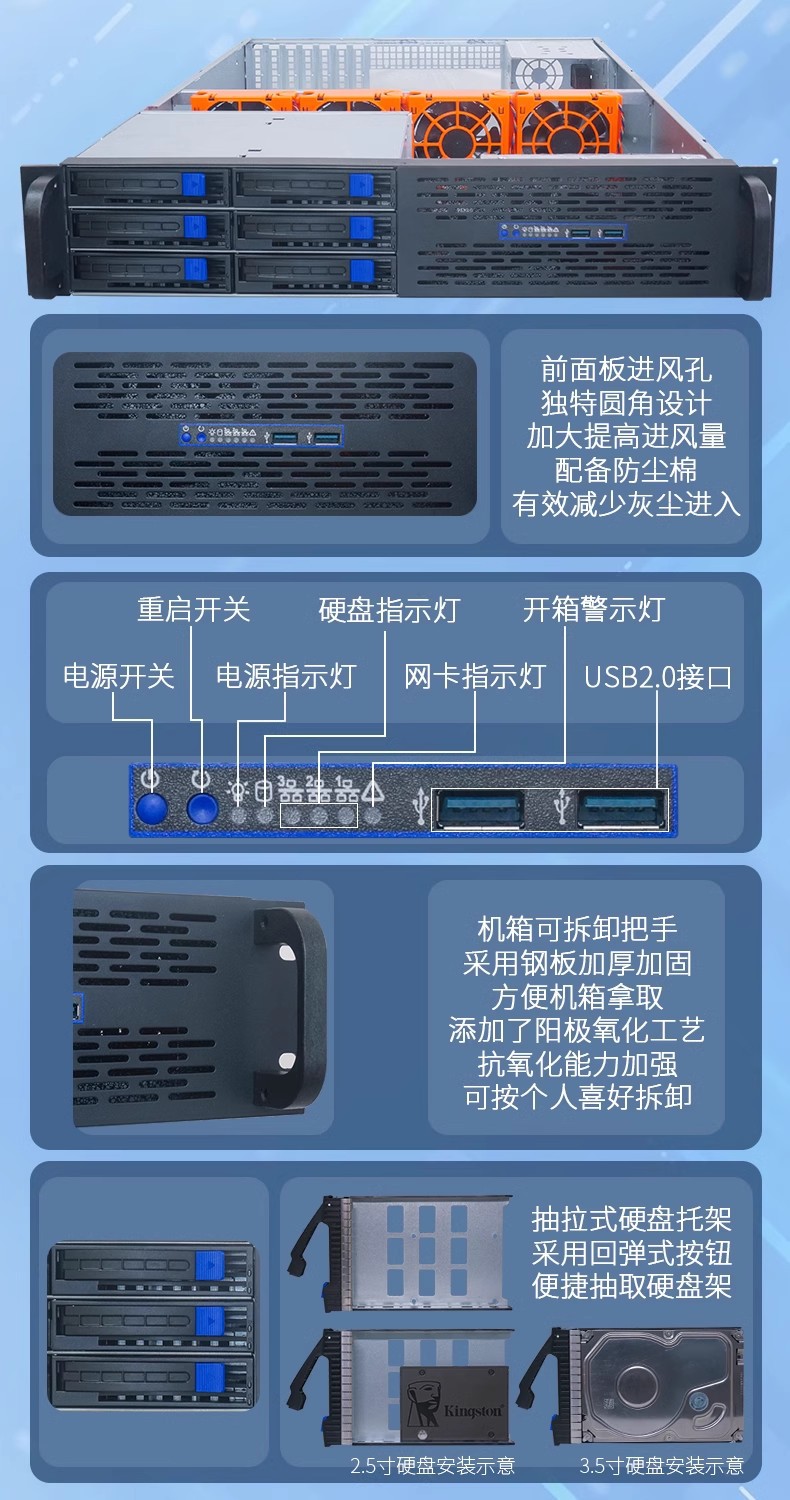 2U 핫 플러그 서버 섀시 6 디스크 위치 지원 12*13 대형 보드 65cm 깊이 7 세미 하이 카드 확장 슬롯
