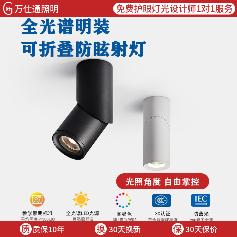 Led 천장 스포트라이트 360 도 회전 접이식 표면 장착 다운 라이트 거실 벽 세척 스포트라이트 비 개방 천장 통스토어 가기